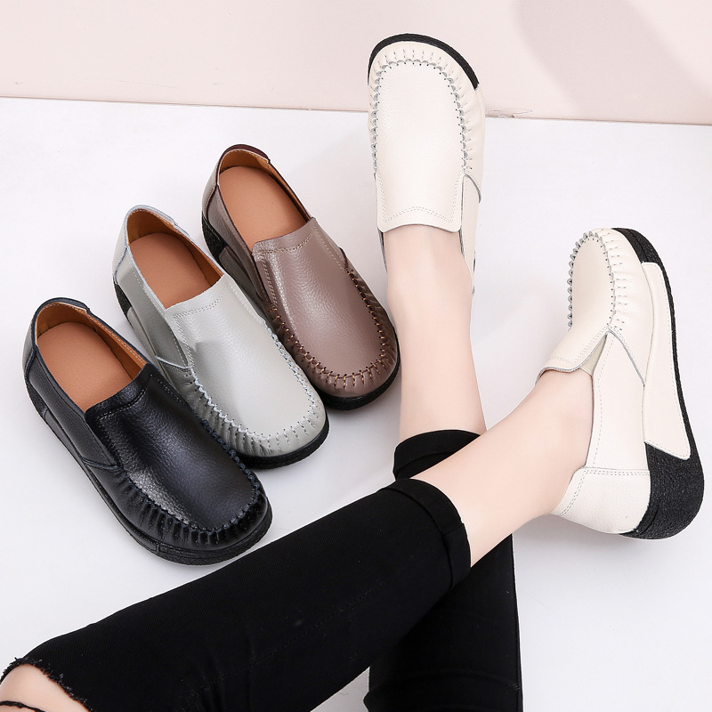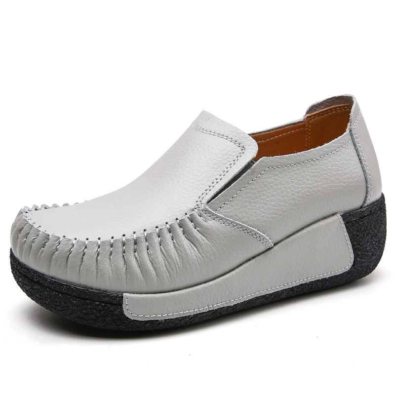 여성용 신상 봄가을 소가죽 운동화, 탄력있는 두꺼운 밑창 플랫폼 슈즈, 편안한 중년 및 노년 여성용 신발