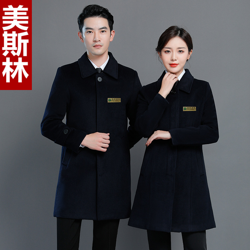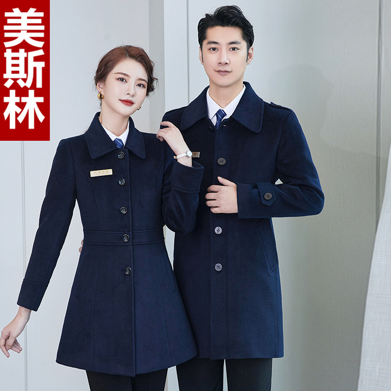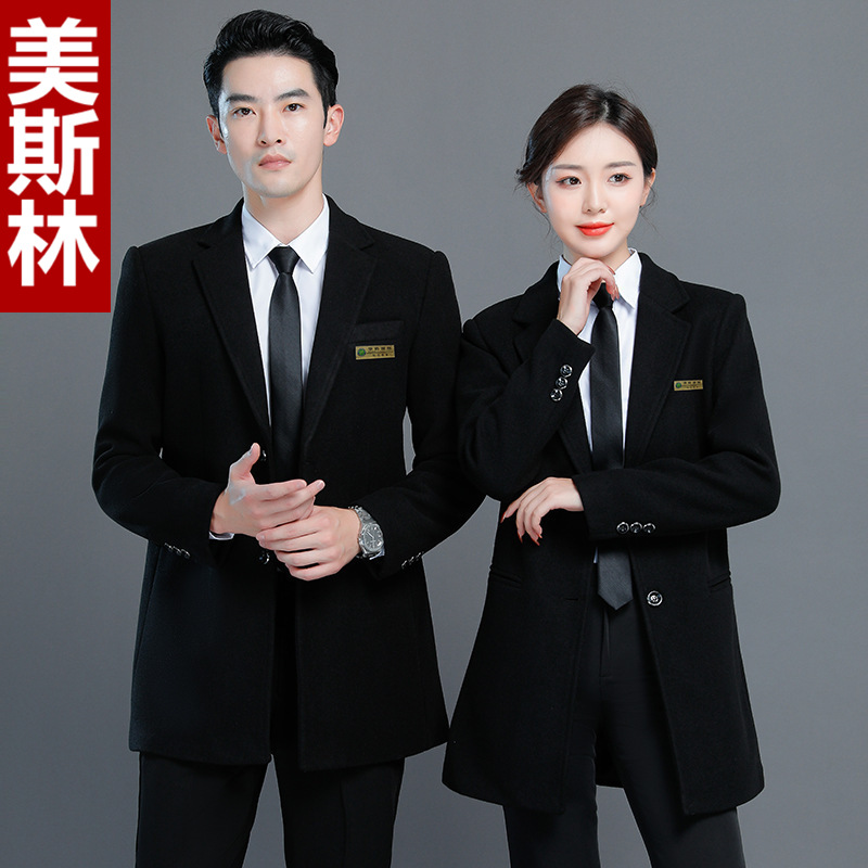 양모 비즈니스웨어 은행 작업복 호텔 프론트 데스크 계산원 모직 코트 중간 길이 코트 여성용 가을 겨울 의류 남성용