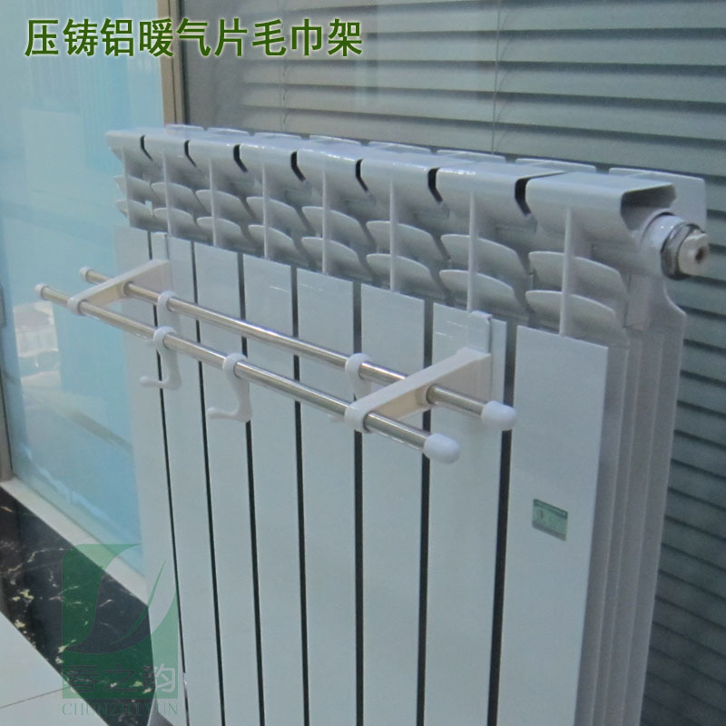 产品介绍:悬挂式暖气片毛巾架,安装在压铸铝暖气片、钢制板式暖气片、8050型暖气片、7025元宝片,或者部分铜铝(钢铝)复合暖气片、卫浴暖气片上,利用暖气散发的热量,给衣物快速晾晒、暖热、烘干、置物等。