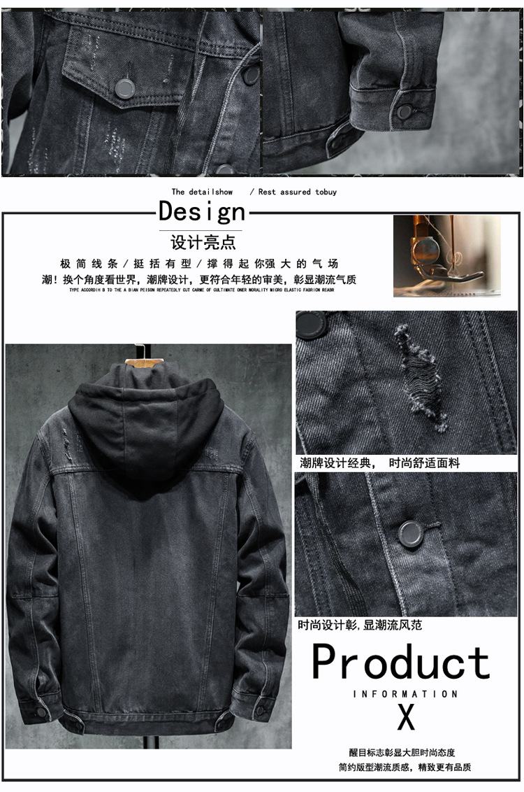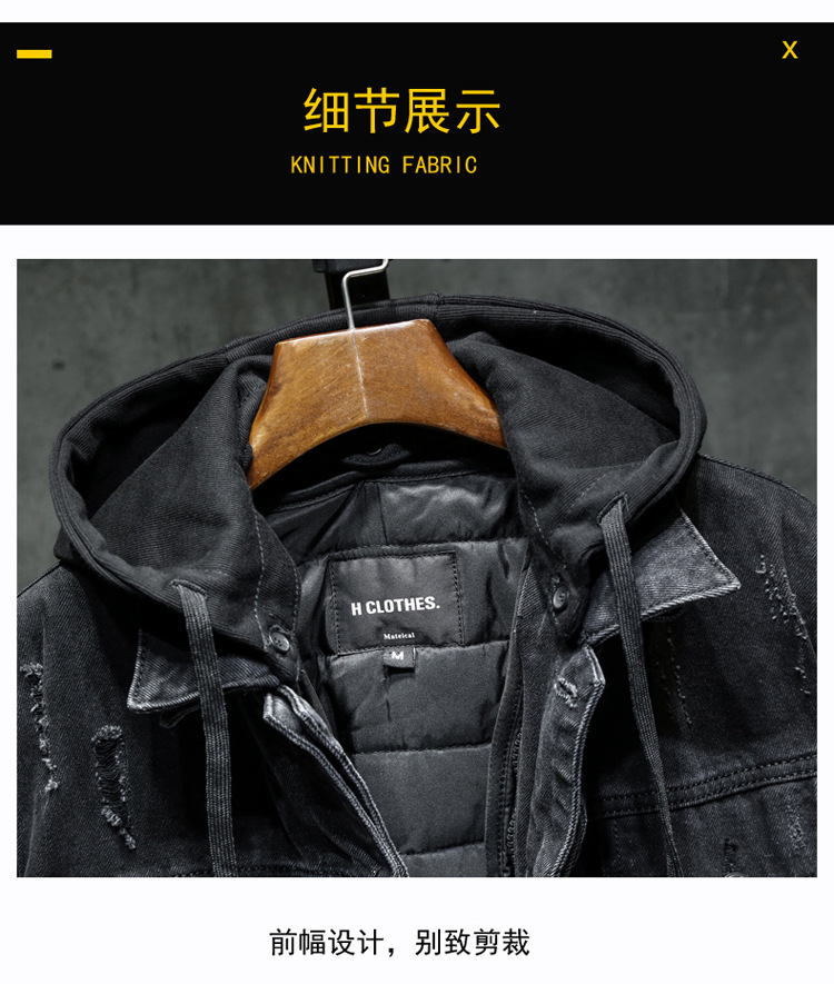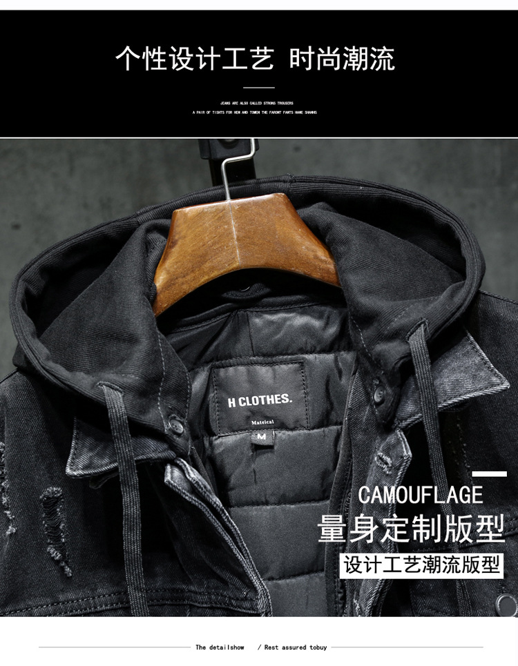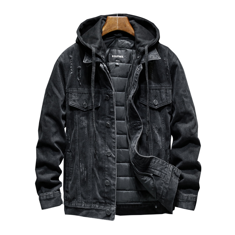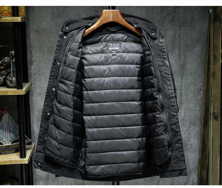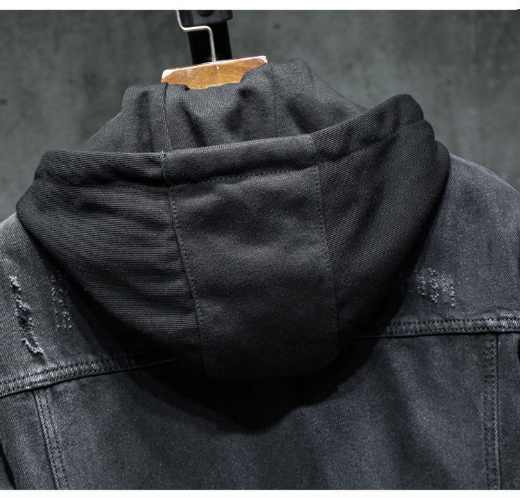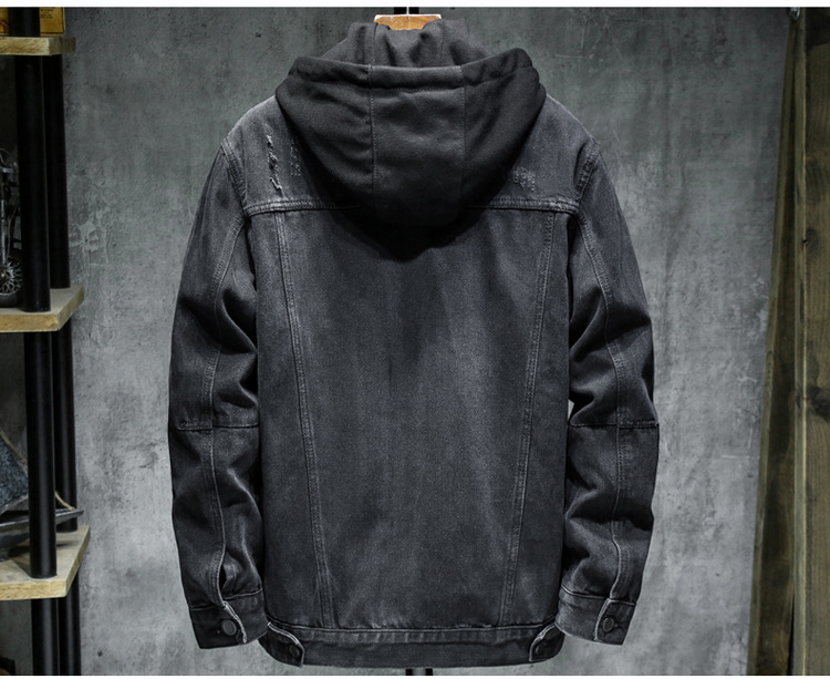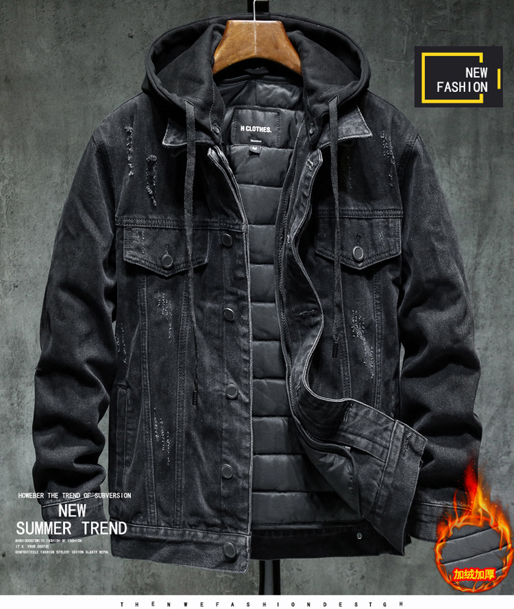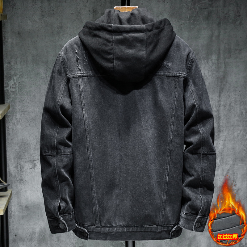 일본 스타일 유행 브랜드 두꺼운 데님 재킷 남자의 가을과 겨울 후드 청소년 면 따뜻한 분리 재킷 데님 재킷