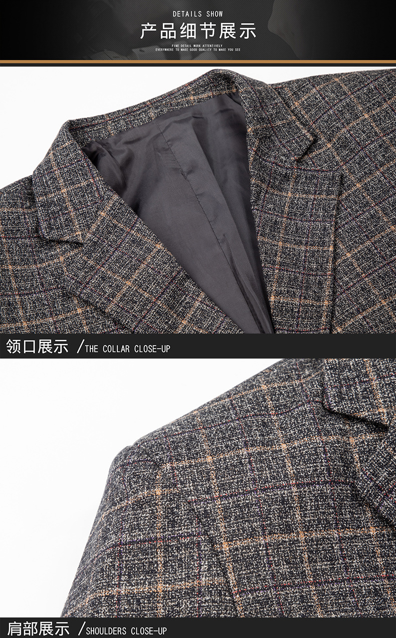 2026 체크무늬 캐주얼 수트 남성용 고급 재킷 포켓이 넉넉한 투버튼 체크무늬 비즈니스 수트 남성용 봄가을