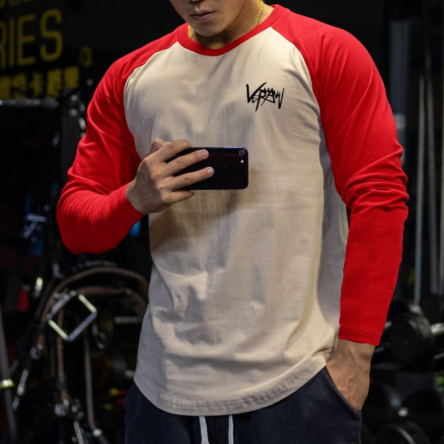 근육 피트니스 형제 남자 봄 가을 스포츠 레저 컬러 매칭 농구 트레이닝 베이스 긴 소매 티셔츠 대외 무역 도매