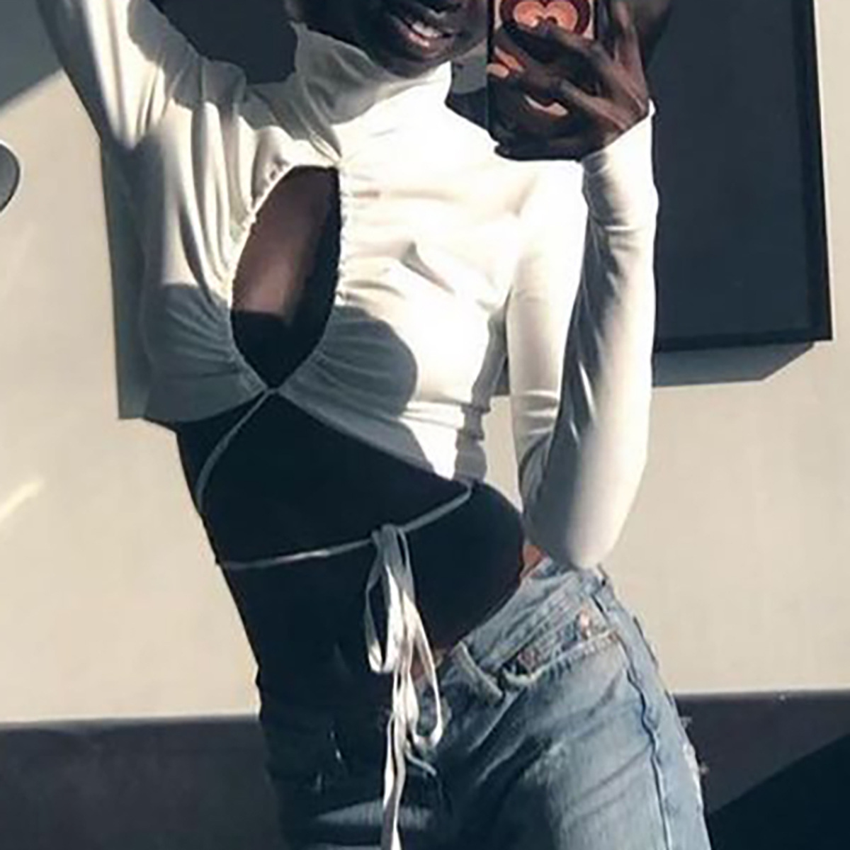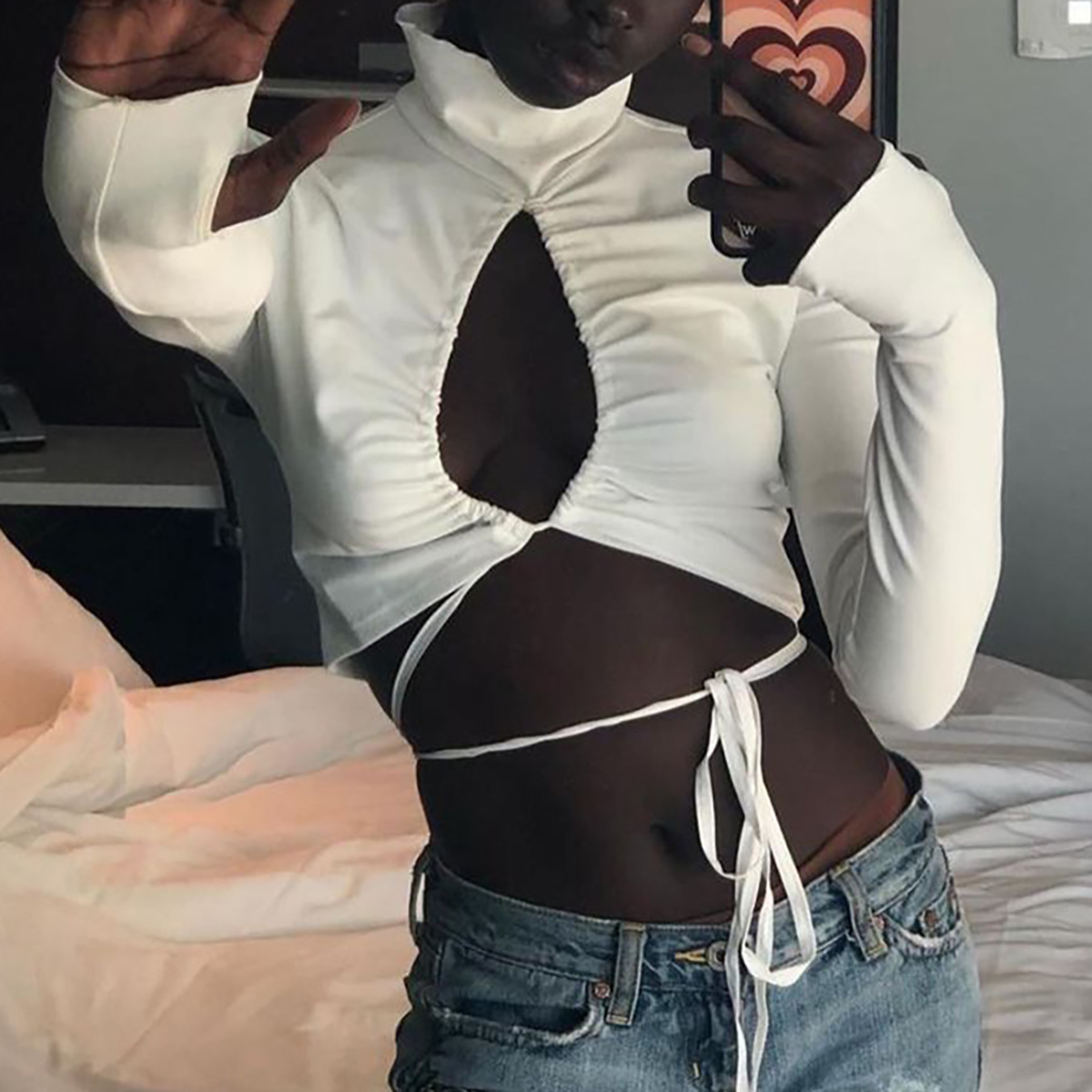 2021 봄과 여름 대외 무역 새로운 유럽과 미국 여성의 단색 긴 소매 티셔츠 유행 인터넷 인기 높은 칼라베이스 셔츠 여성용