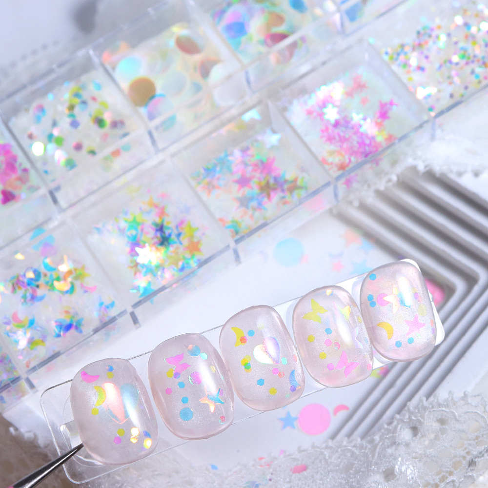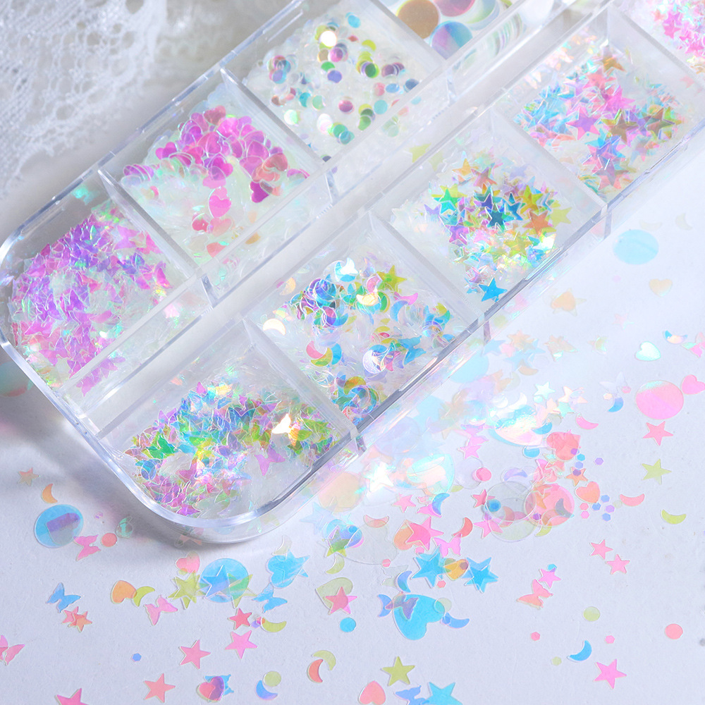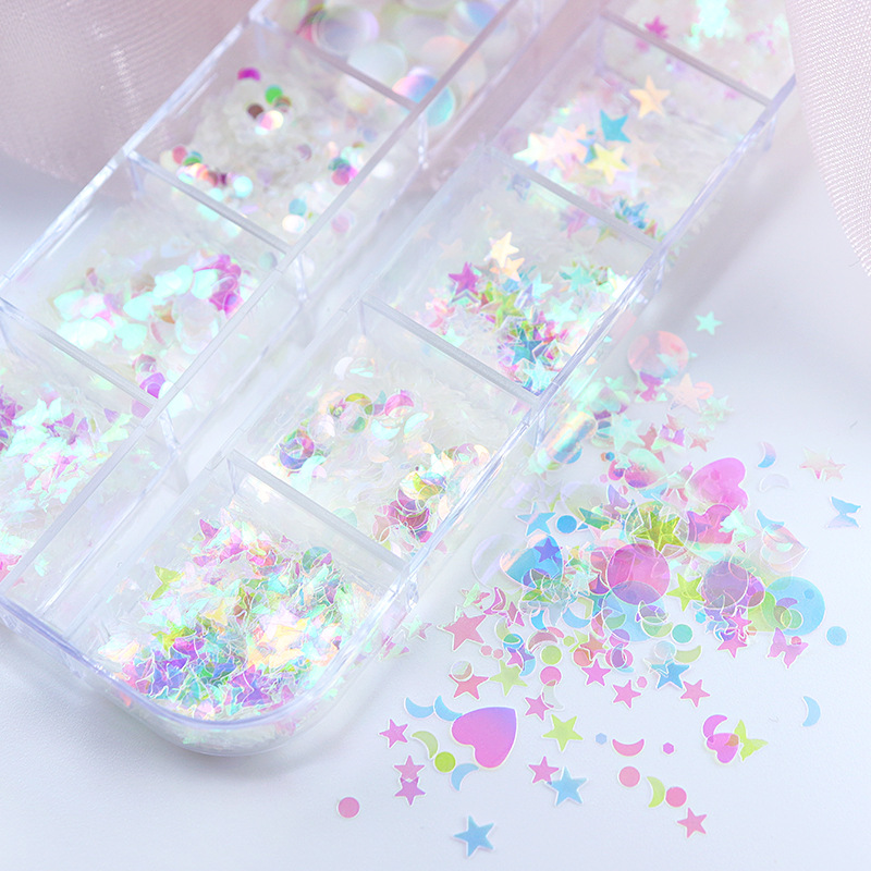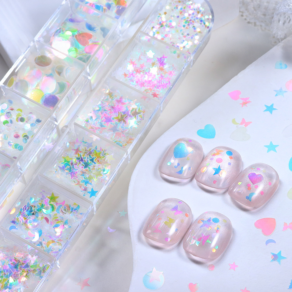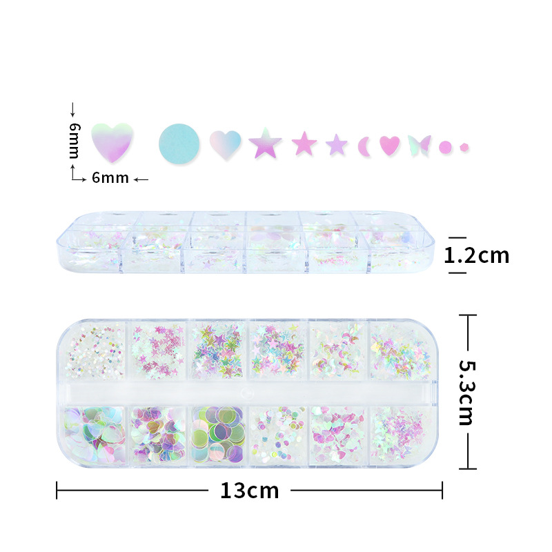 12格盒装透多彩人鱼美甲亮片饰品DIY装饰