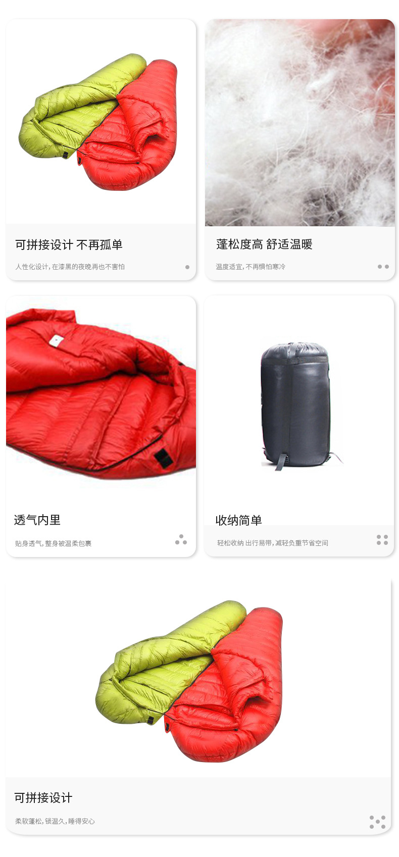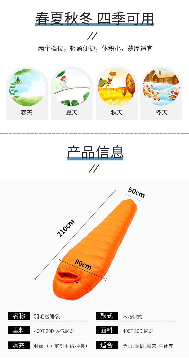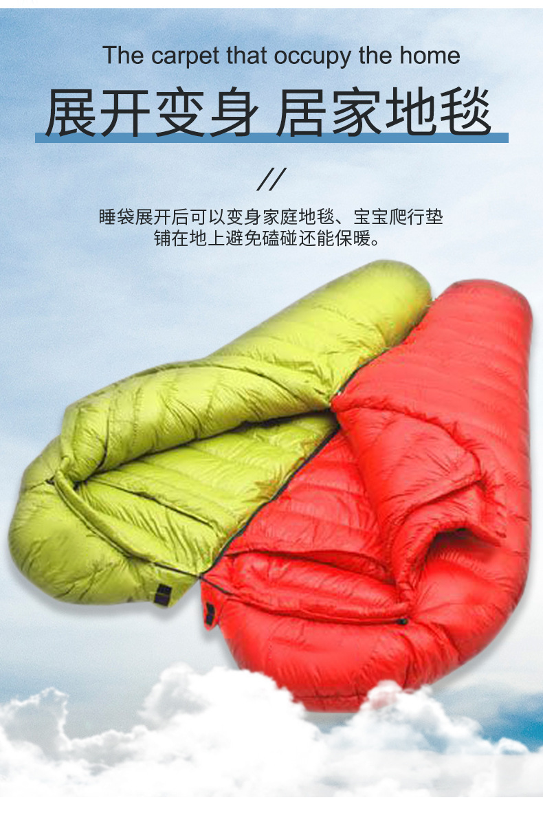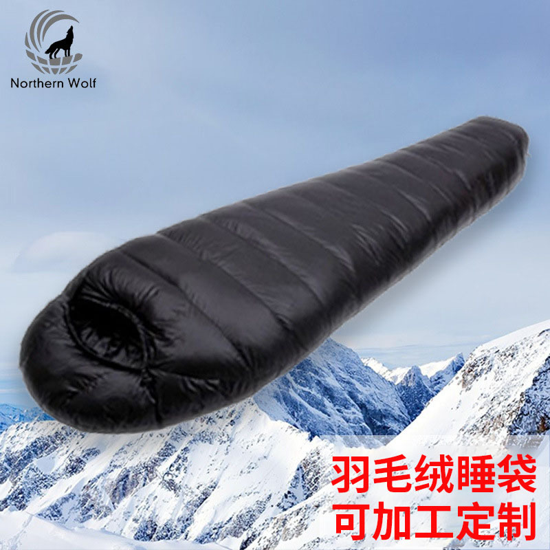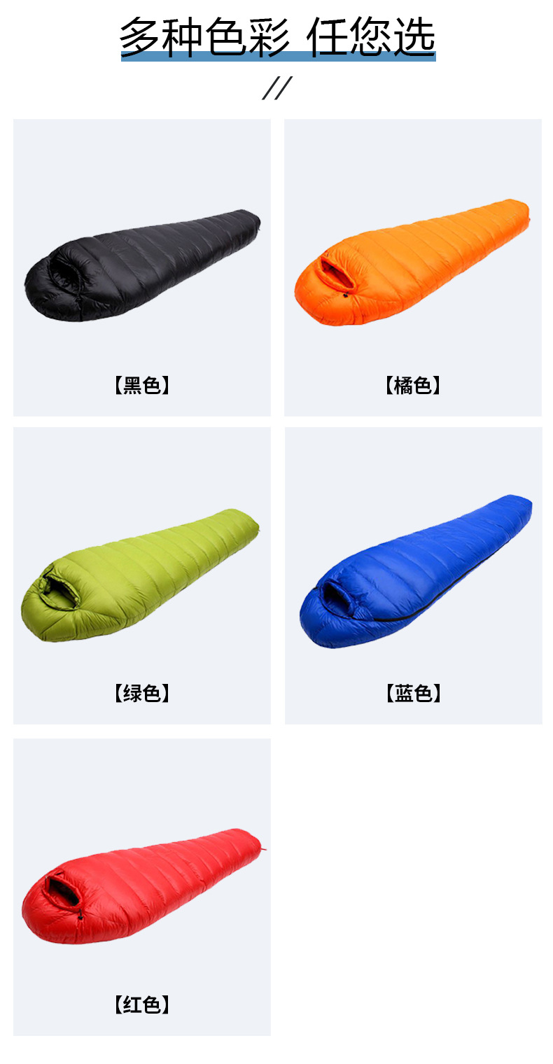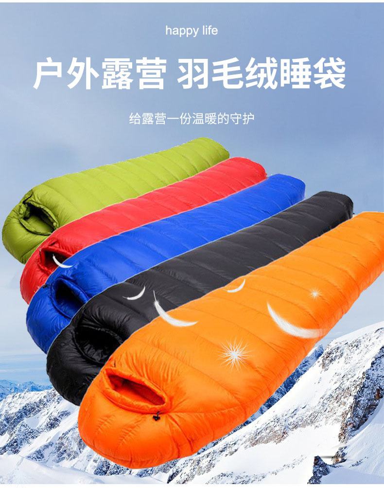 맞춤형 깃털 벨벳 슬리핑 백 미라 야외 캠핑 냉간 따뜻한 슬리핑 백 접합 캠핑 여행 슬리핑 백