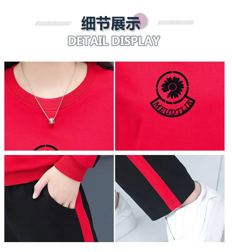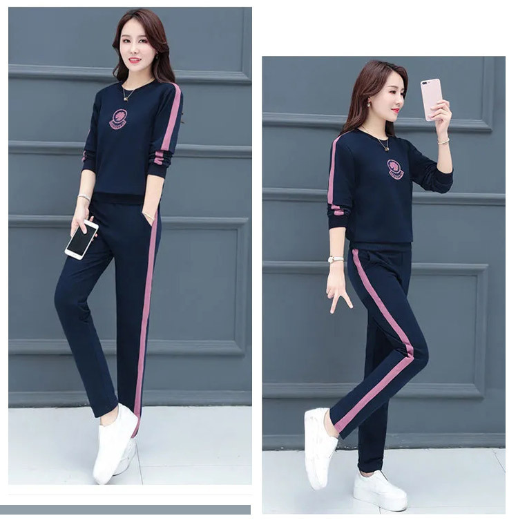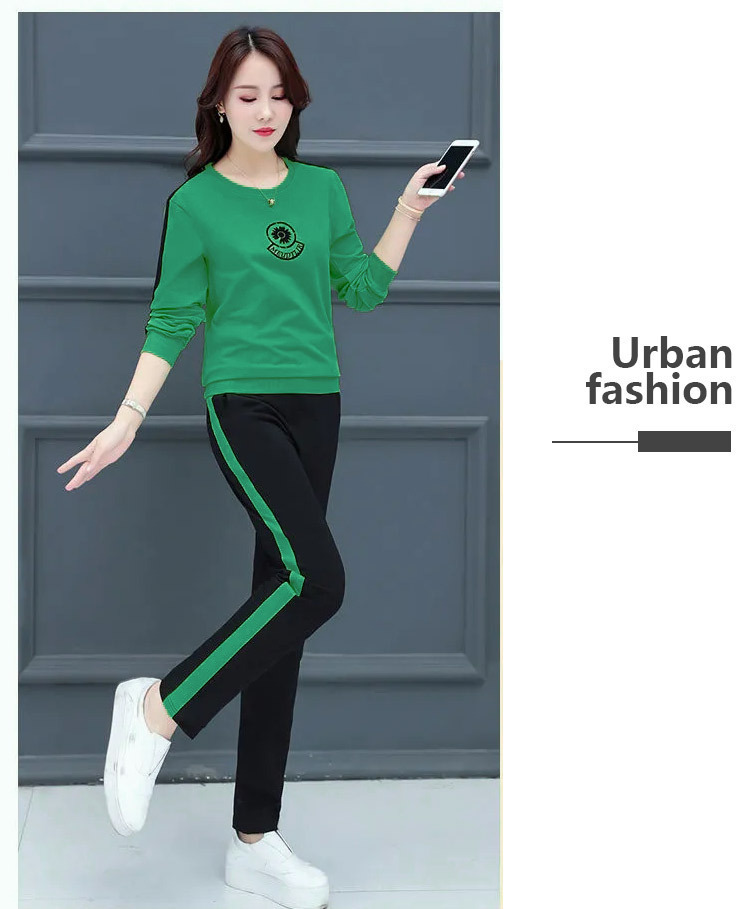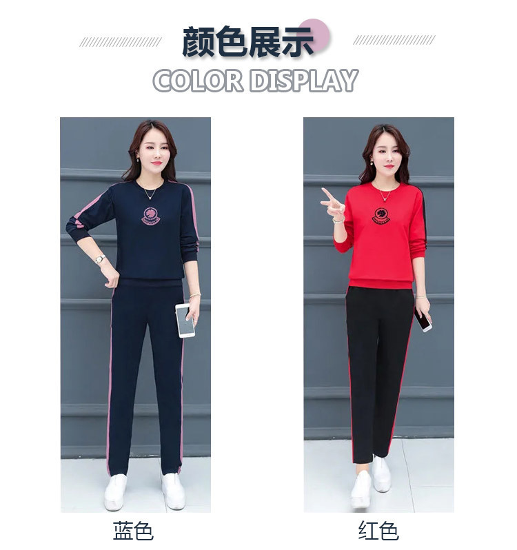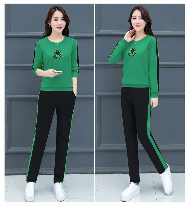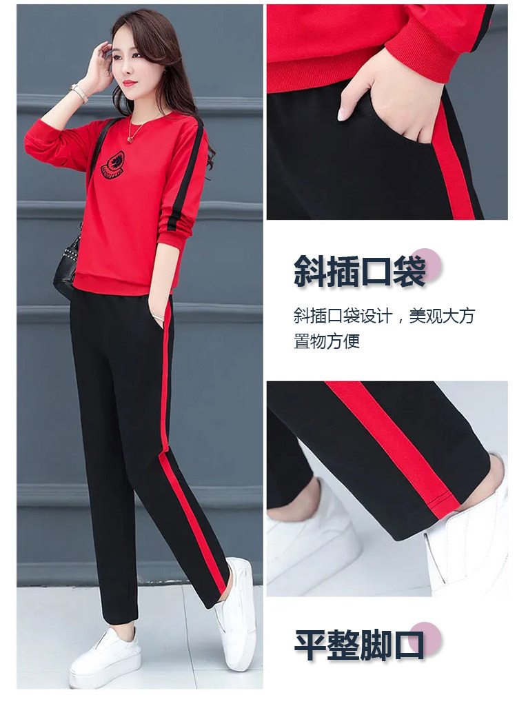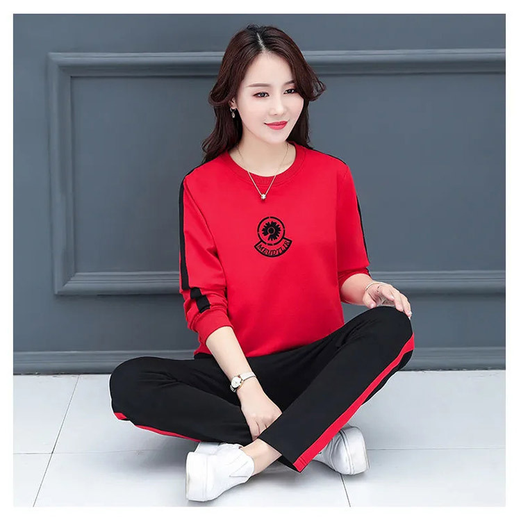 여성용 캐주얼 스포츠 슈트 가을 2026 신상 한국 스타일 긴팔 긴바지 큰 사이즈 슬림핏 패셔너블하고 나이를 줄여주는 투피스 세트