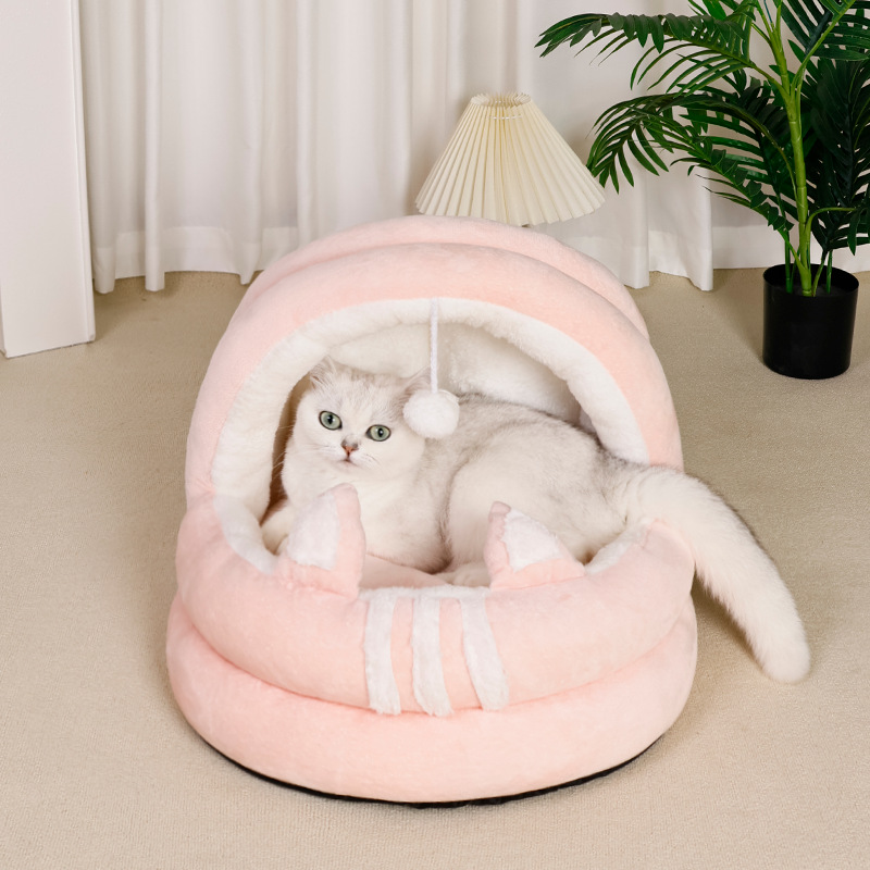 만화 강아지 집 고양이 집 고양이 애완동물 용품 겨울 보온 반폐쇄형 탈부착 가능 세탁 가능 고양이 집 침낭 겨울형