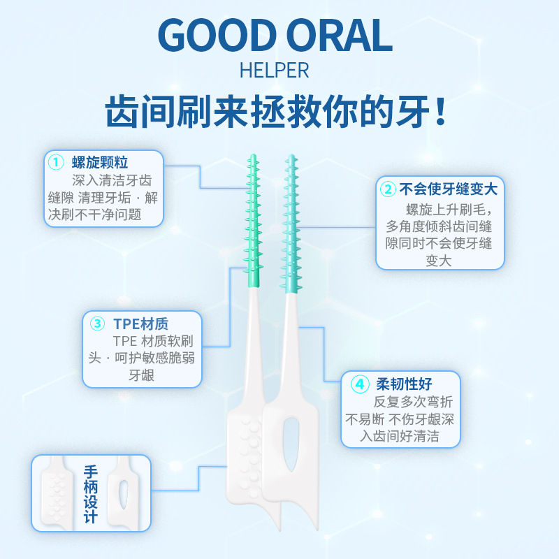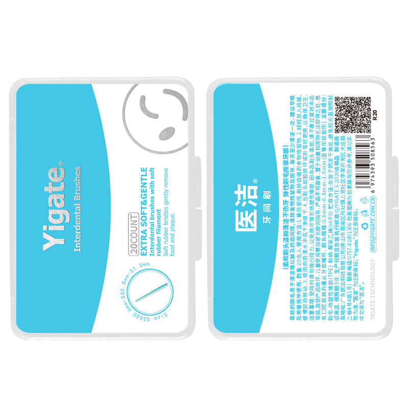 의료 청소 치간 브러시 부드러운 실리콘 적응 치간 브러시 치아 틈새 브러시 부드러운 머리 청소 교정 브러시 20 팩