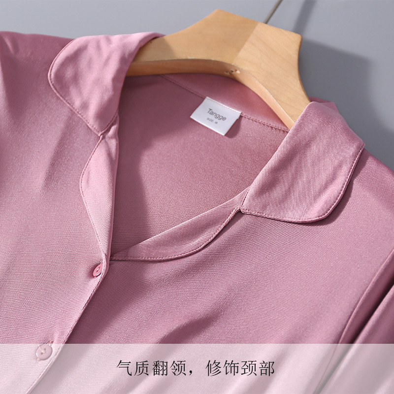 실크 얇은 플러스 사이즈 잠옷 세트 여자의 뽕나무 실크 긴 소매 잠옷 잠옷 사계절 착용 느슨한 가정 옷