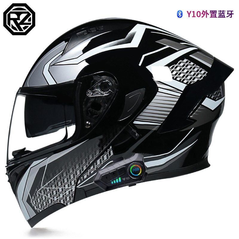 Orz 남녀 전기 오토바이 헬멧 성격 블루투스 풀 헬멧 배터리 자동차 기관차 사계절 겨울 따뜻한 머리 그레이
