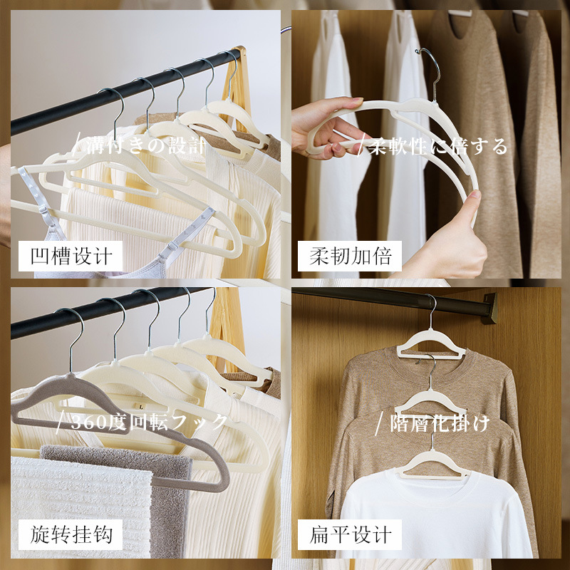 DREX Japan Jigang Flocking Hanger 와이드 숄더 원활한 미끄럼 방지 옷장 보관 및 주최자 전문 가정용 옷걸이