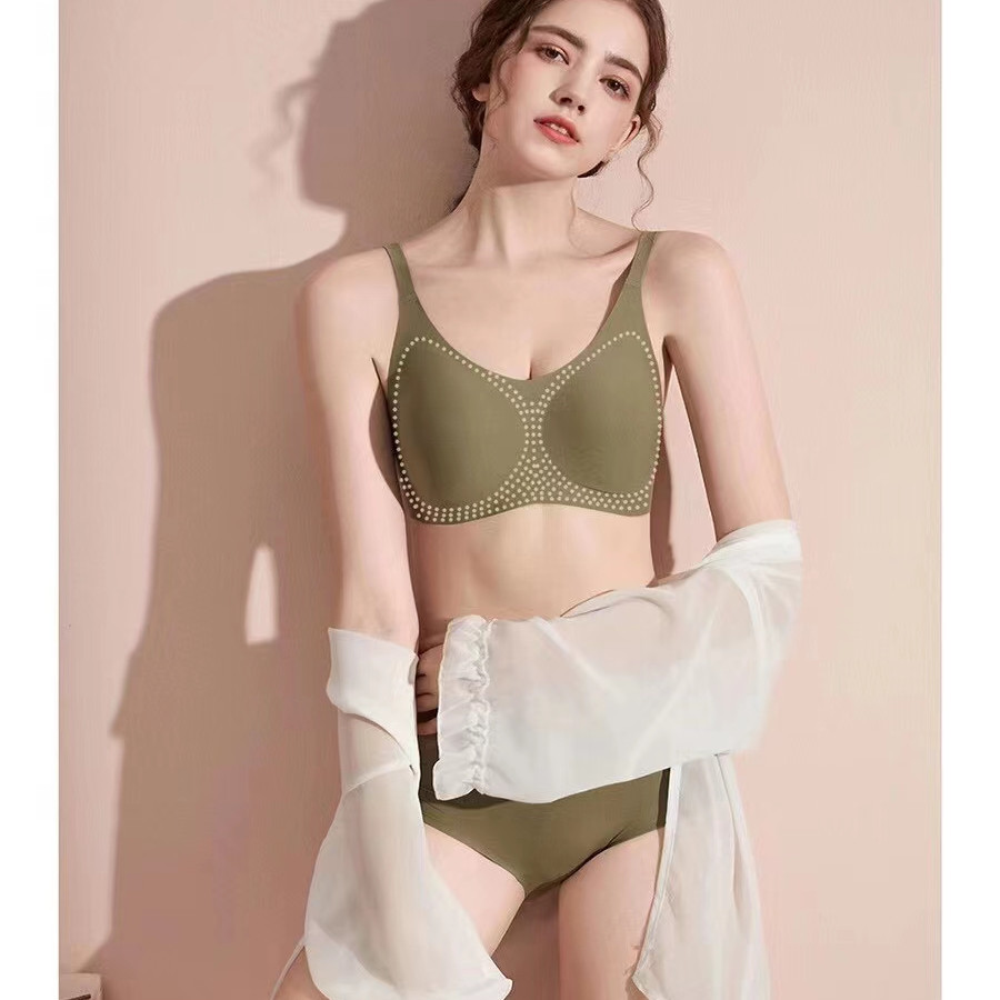 작은 가슴을 위한 무봉제 속옷, 심리스 원피스 노와이어 브라 세트, 편안하고 통기성 좋은 스포츠 백리스 풀컵 브라