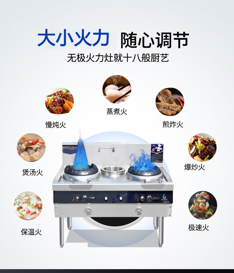 화염정지 방지 기능이 있는 가스 모델, 이중 튀김 및 따뜻한 1500*800*800, 냄비 화염정지 기능 포함