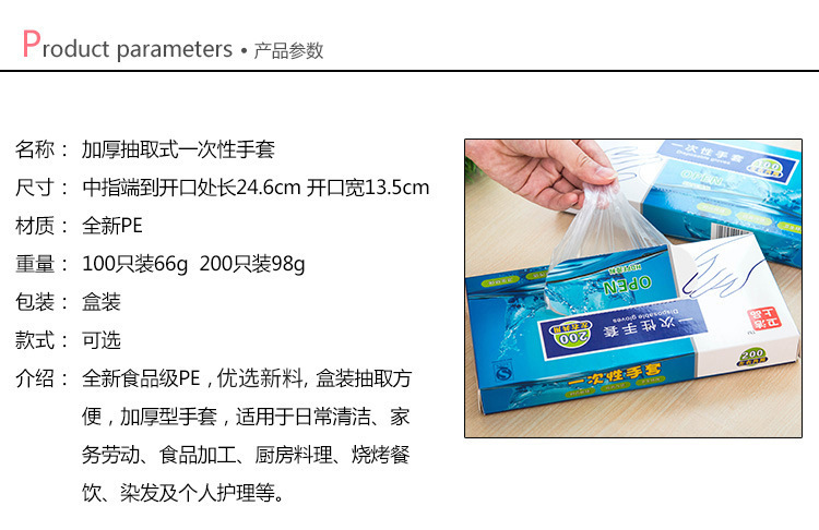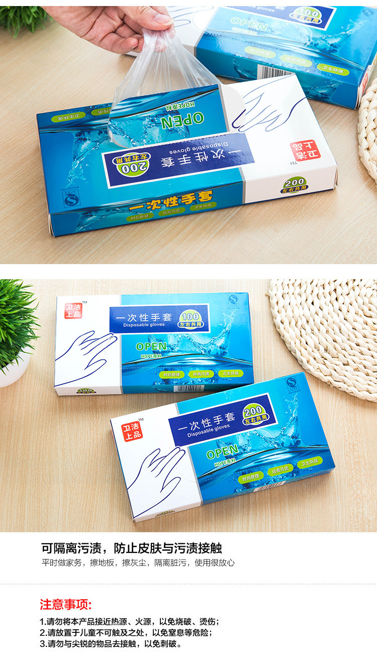일회용 장갑 100개, 투명 미용 가사, 레스토랑 청소 및 위생 장갑, 박스형 장갑 200개