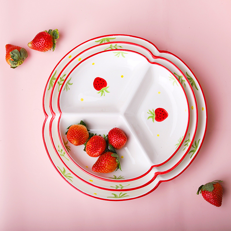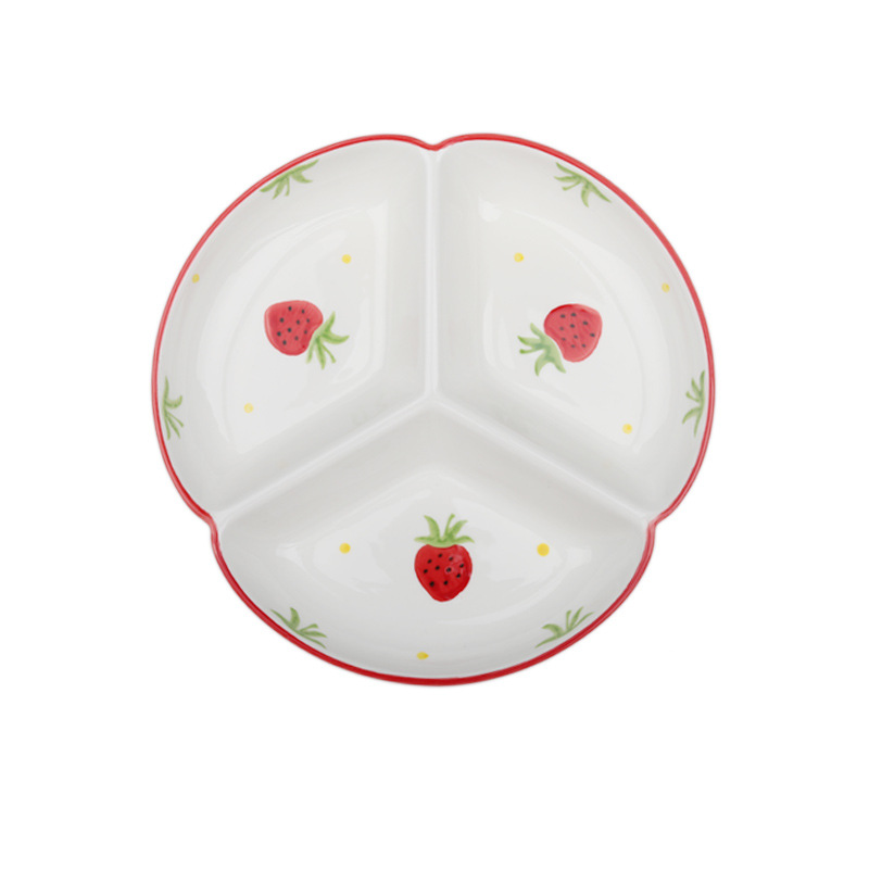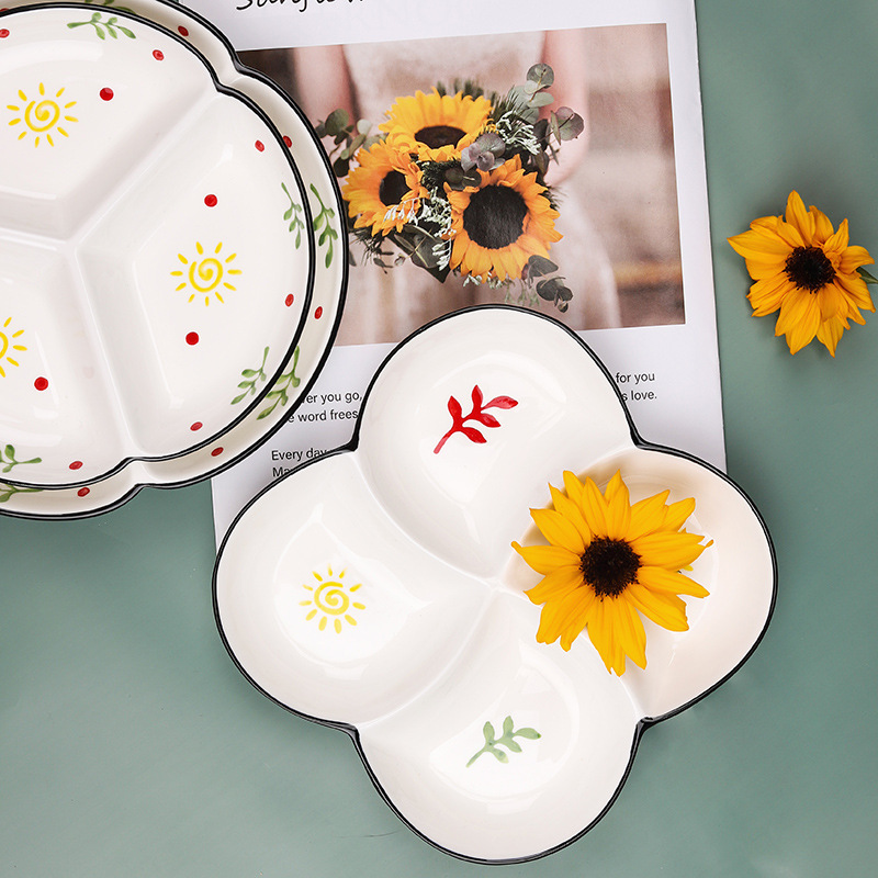 세라믹 접시, 손으로 그린 가정용 창의적인 분리형 접시, 어린이 아침식사 접시, 간단한 3칸 접시, 귀여운 식기