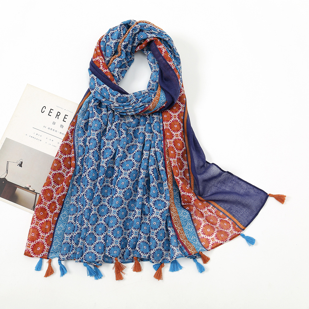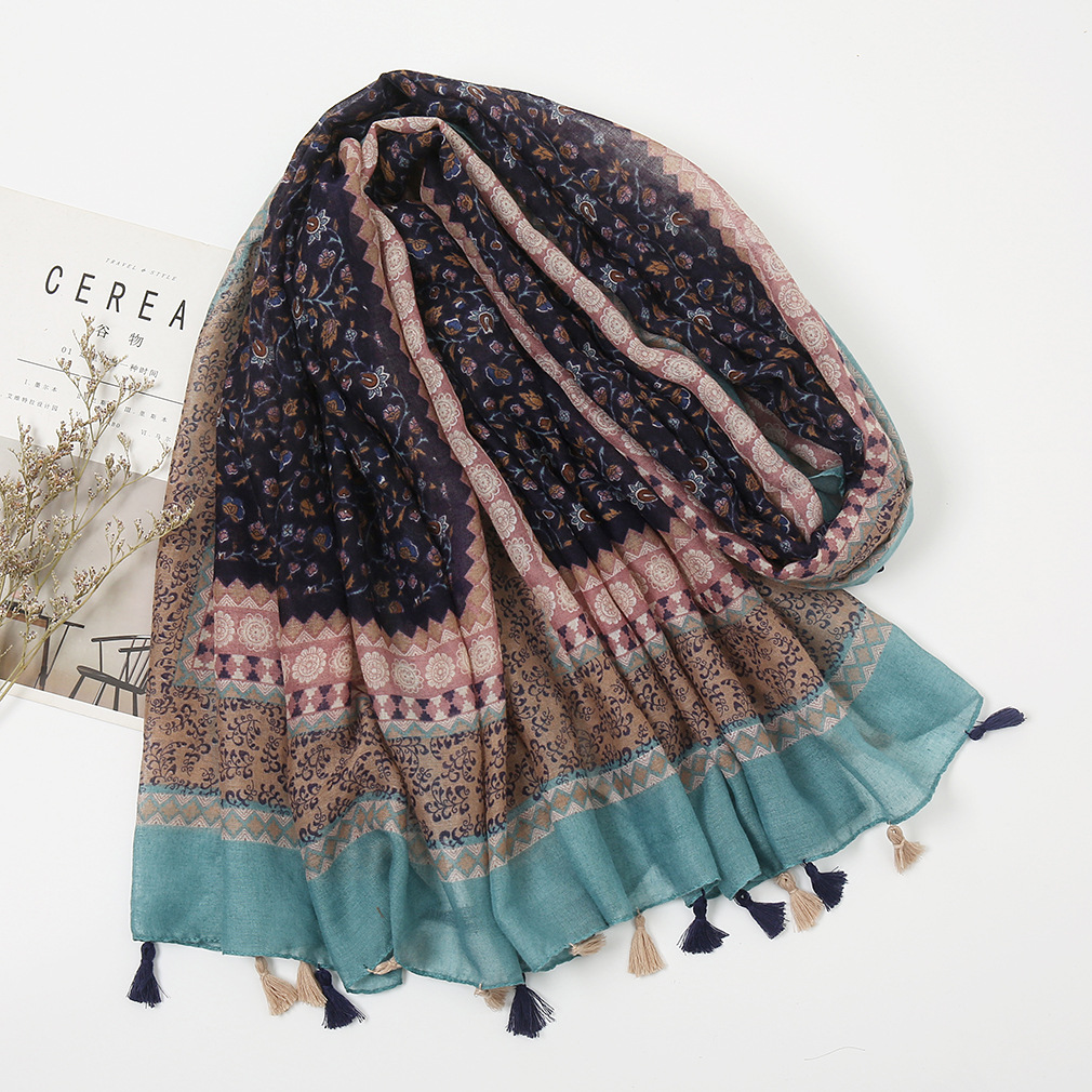 일본식 예술면 린넨 레트로 여성용 스카프 스티칭 선 스크린 목도리 올매치 술 긴 스카프