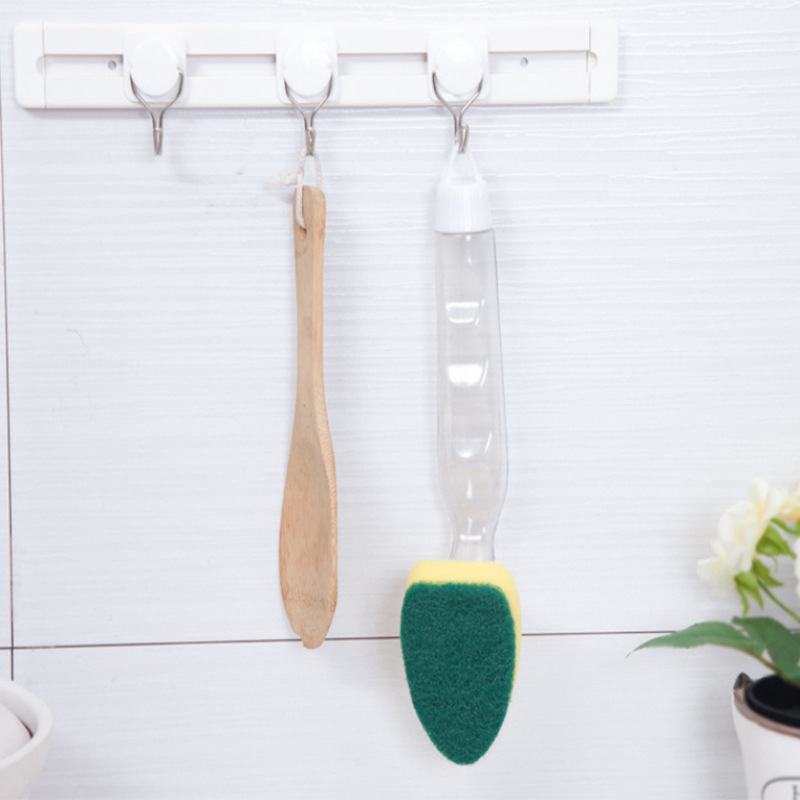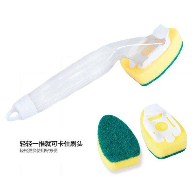 긴 손잡이 자동 액체 세제 냄비 브러시 주방 청소 브러시 스폰지 닦음 오일 프리 탈착식 브러시 천 교체