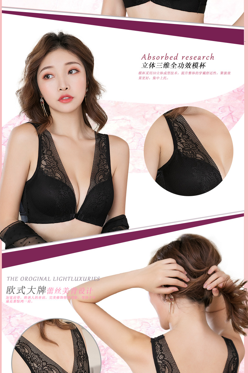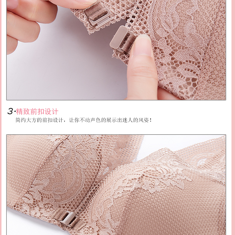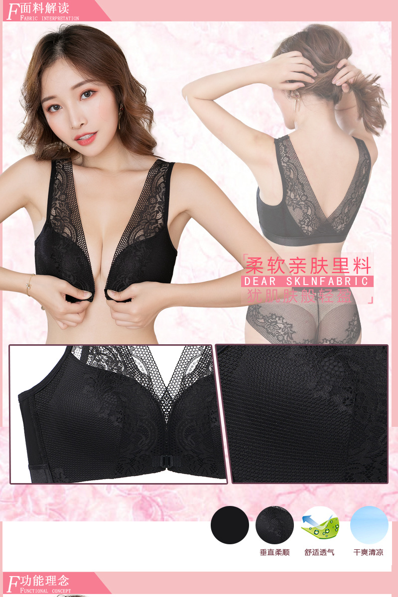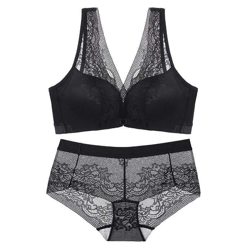 45-100kg 대형 사이즈 무자석 아름다운 등라인 섹시 조끼형 속옷 여성용 노와이어 푸쉬업 앞후크 레이스 브라 세트