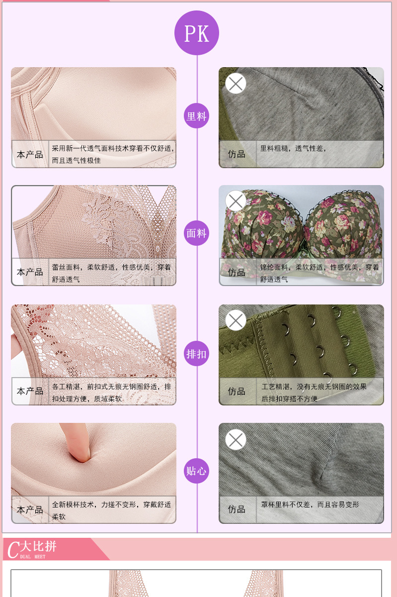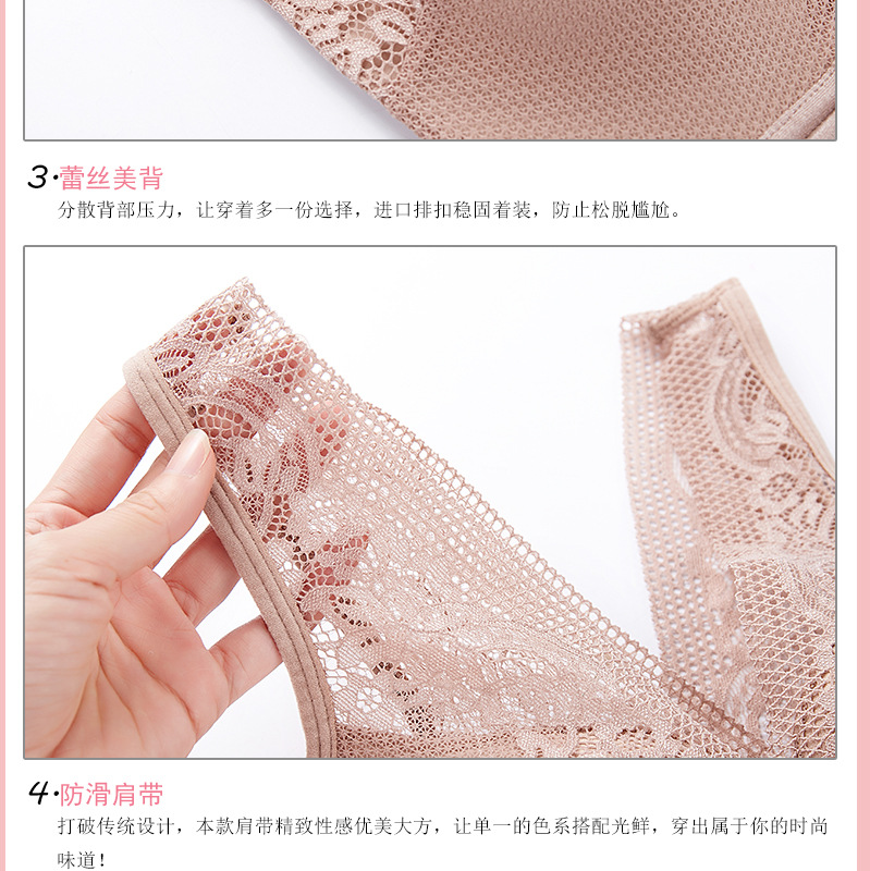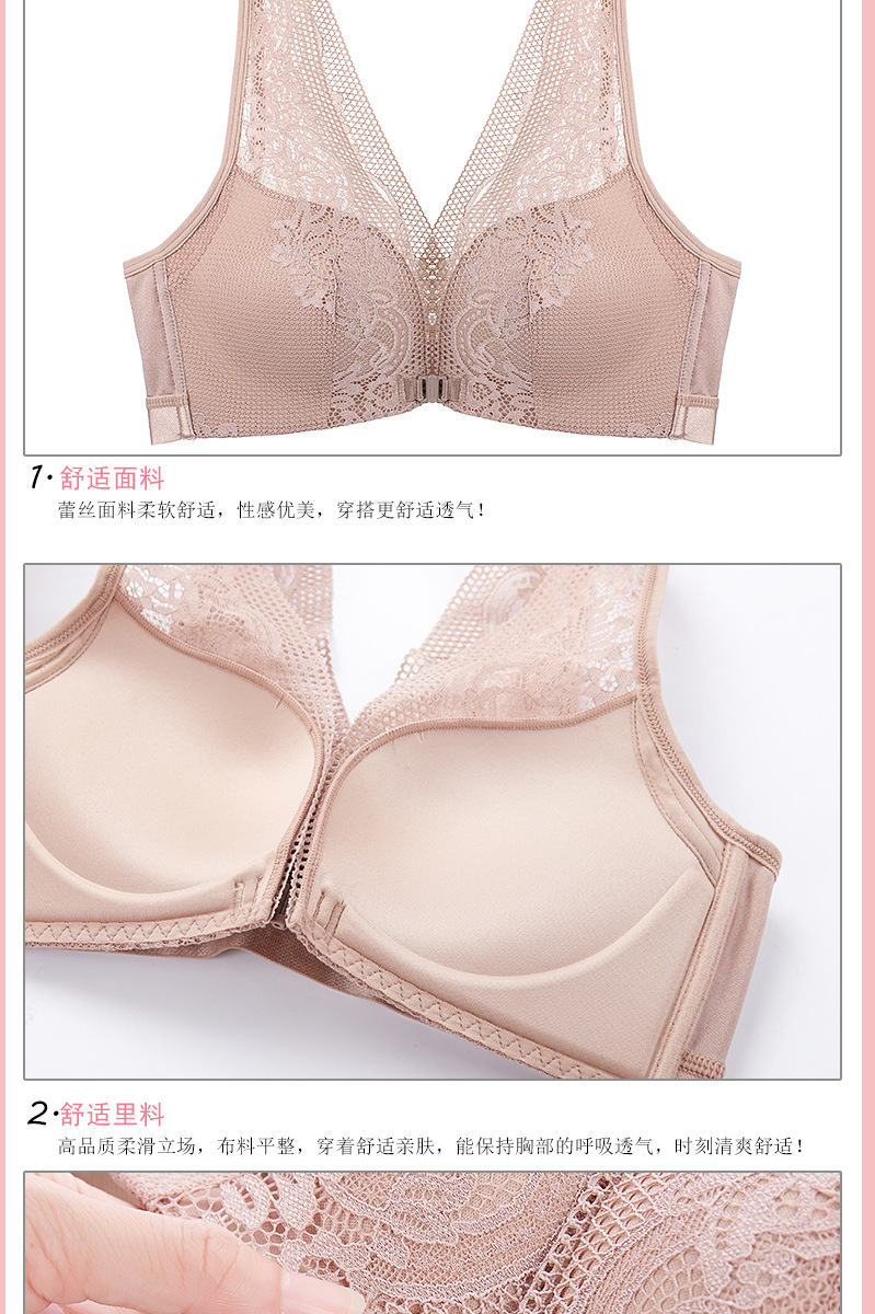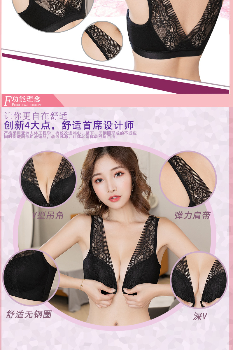 45-100kg 대형 사이즈 무자석 아름다운 등라인 섹시 조끼형 속옷 여성용 노와이어 푸쉬업 앞후크 레이스 브라 세트