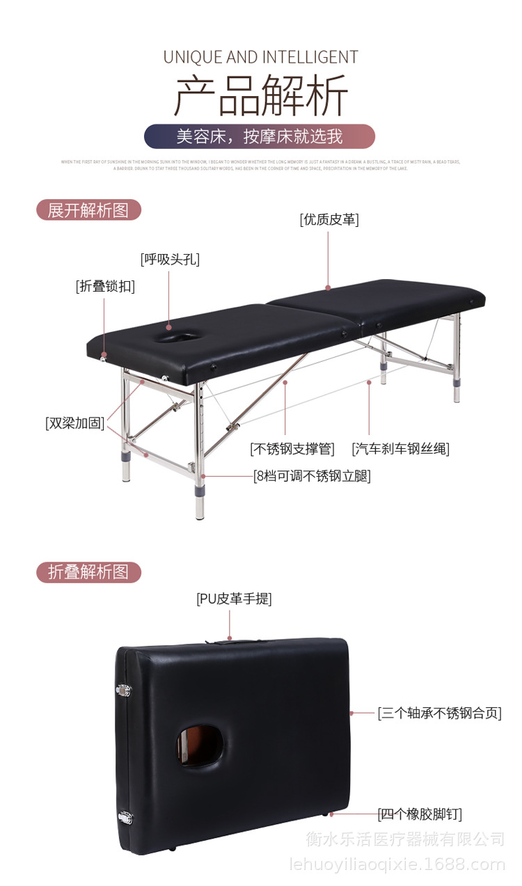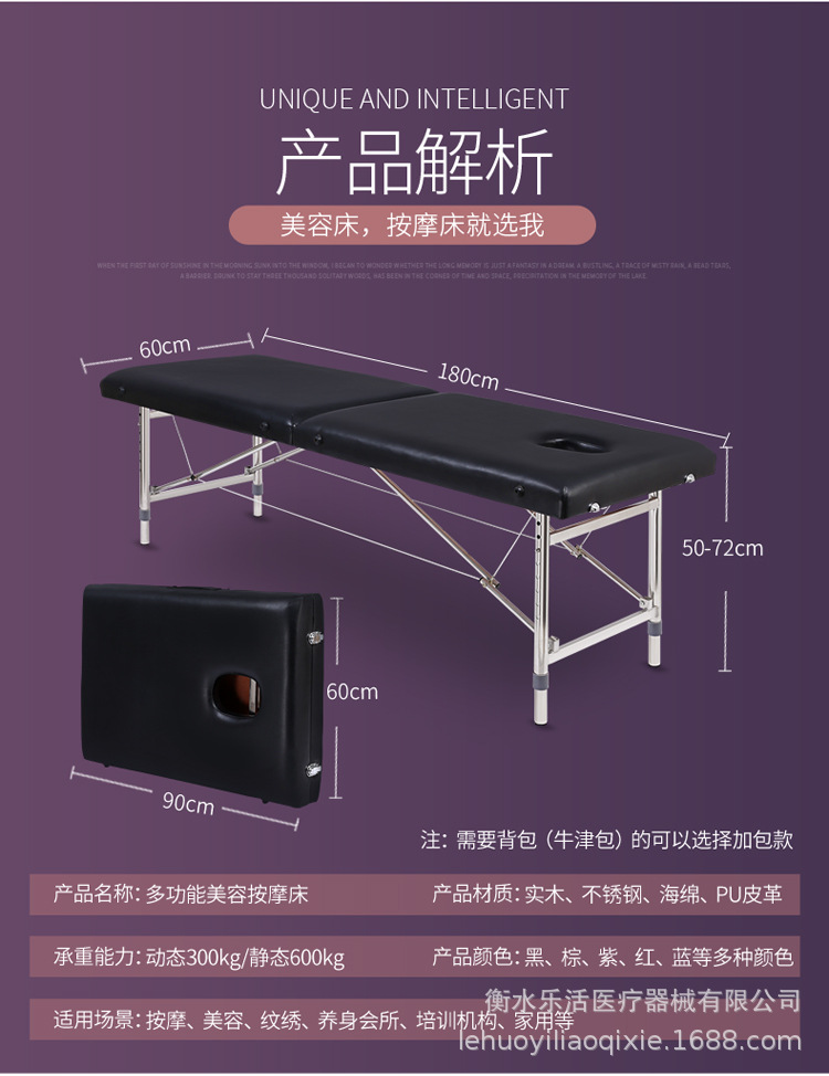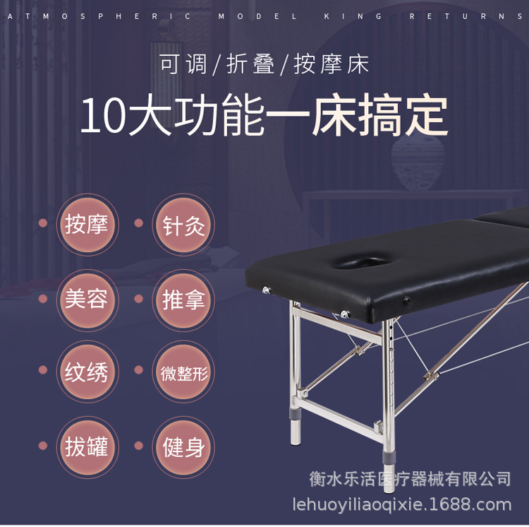 스테인리스 스틸 조절식 마사지 침대 휴대용 접이식 원점 마사지 침대 가정용 미용 침대 문신 침대