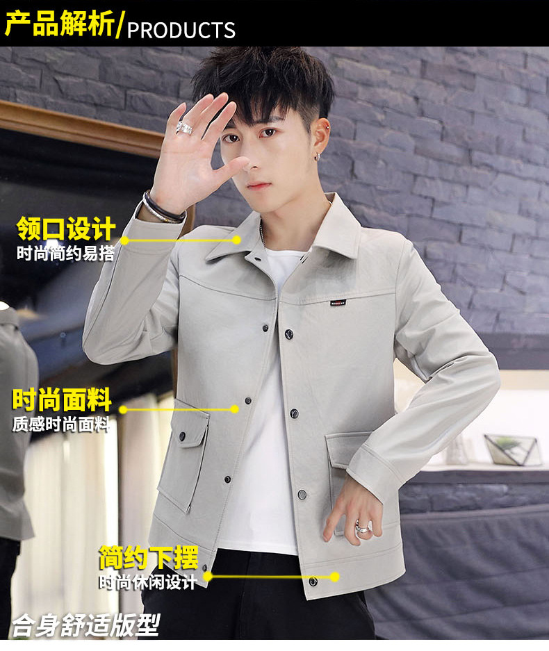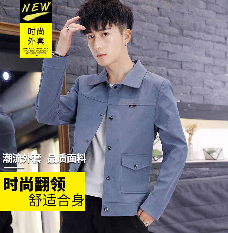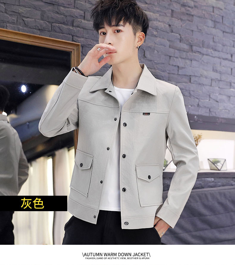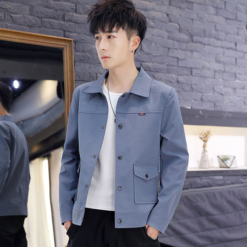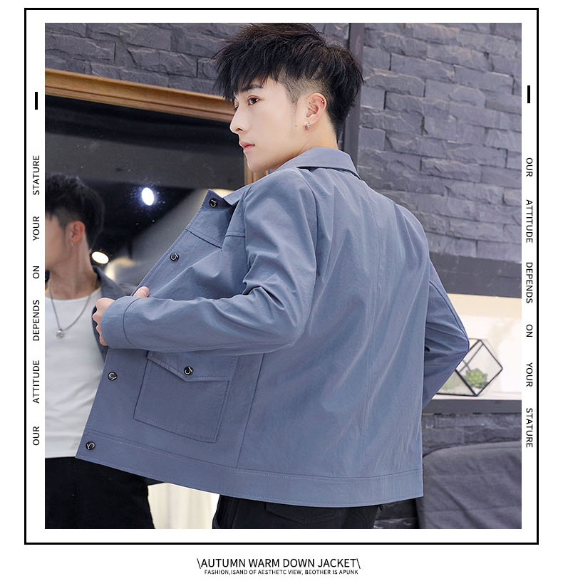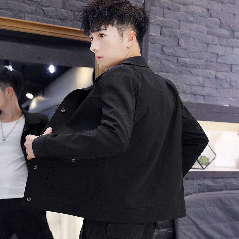 2021 봄과 가을 새로운 남성 한국 스타일 슬림핏 재킷 랩 잘 생긴 짧은 작업복 탑 캐주얼 재킷