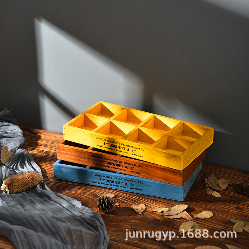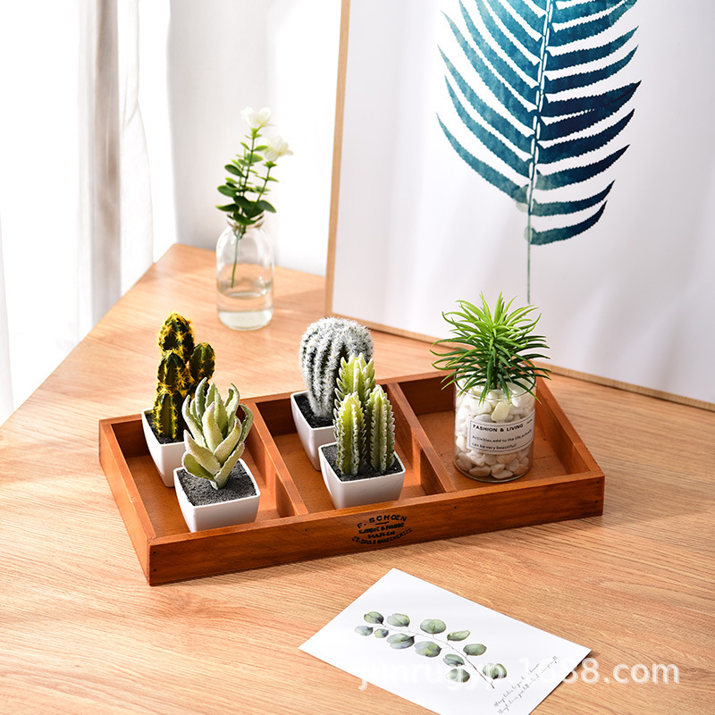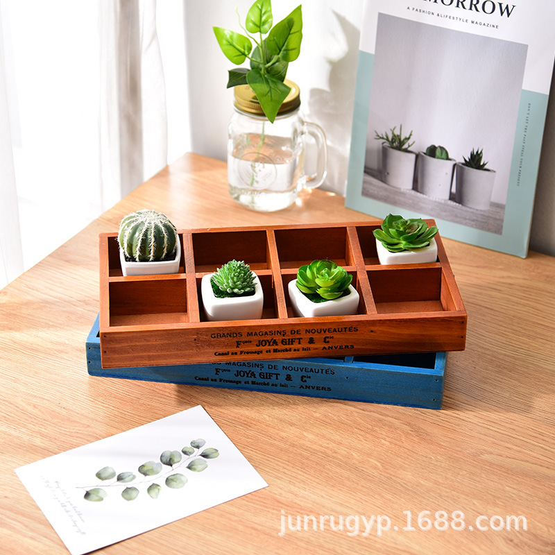Zakka 빈티지 나무 가정용 커피 테이블 보관 상자 창조적 인 다육 식물 나무 화분 8 그리드 트레이