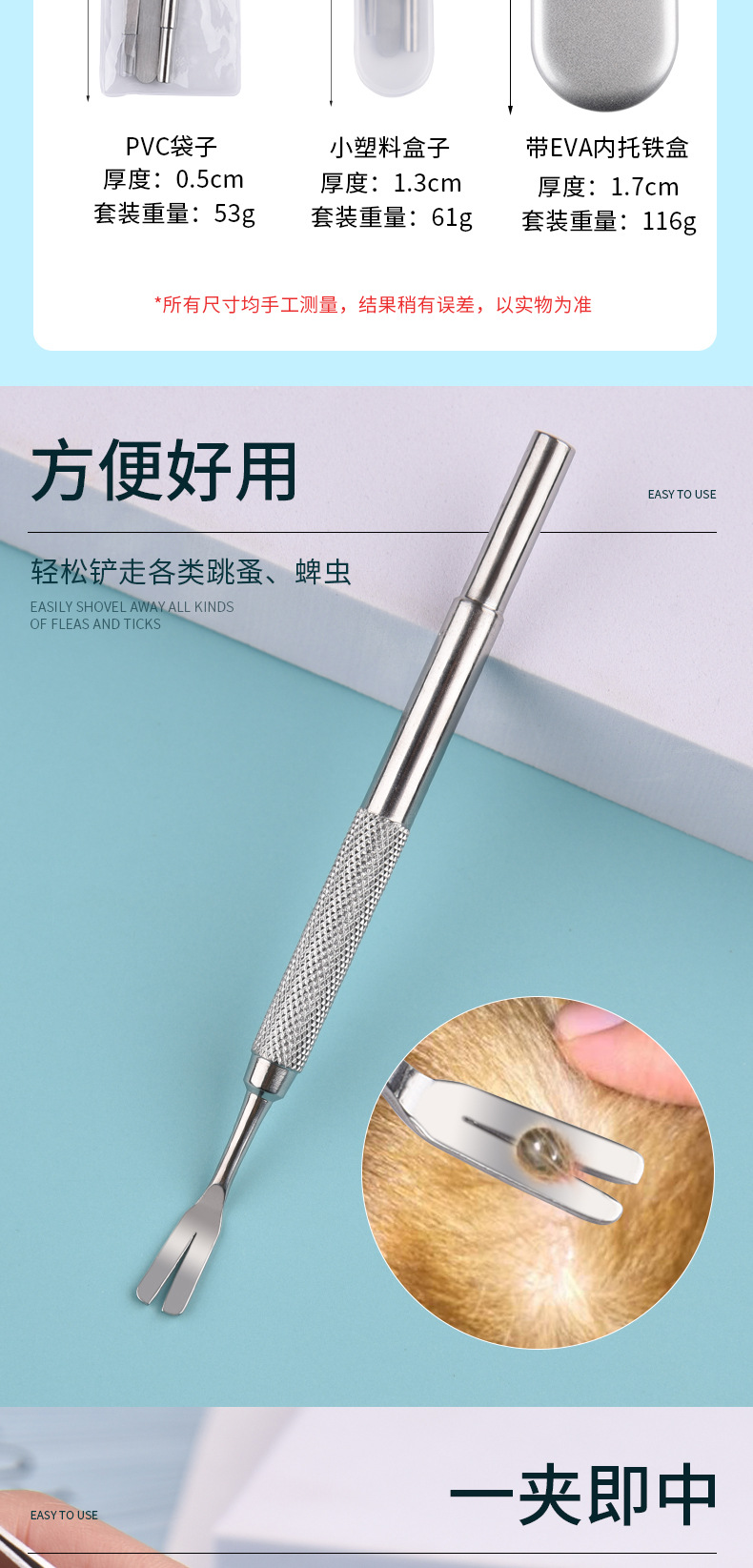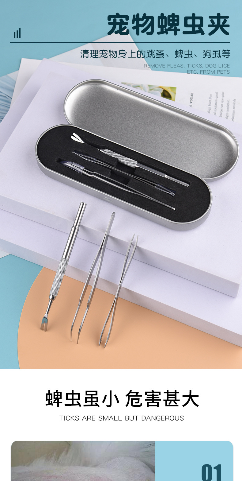 아마존 스테인레스 스틸 진드기 클립 도구 세트 해충 제거 핀셋 애완 동물 개 이가 제거 고양이 개 핀셋