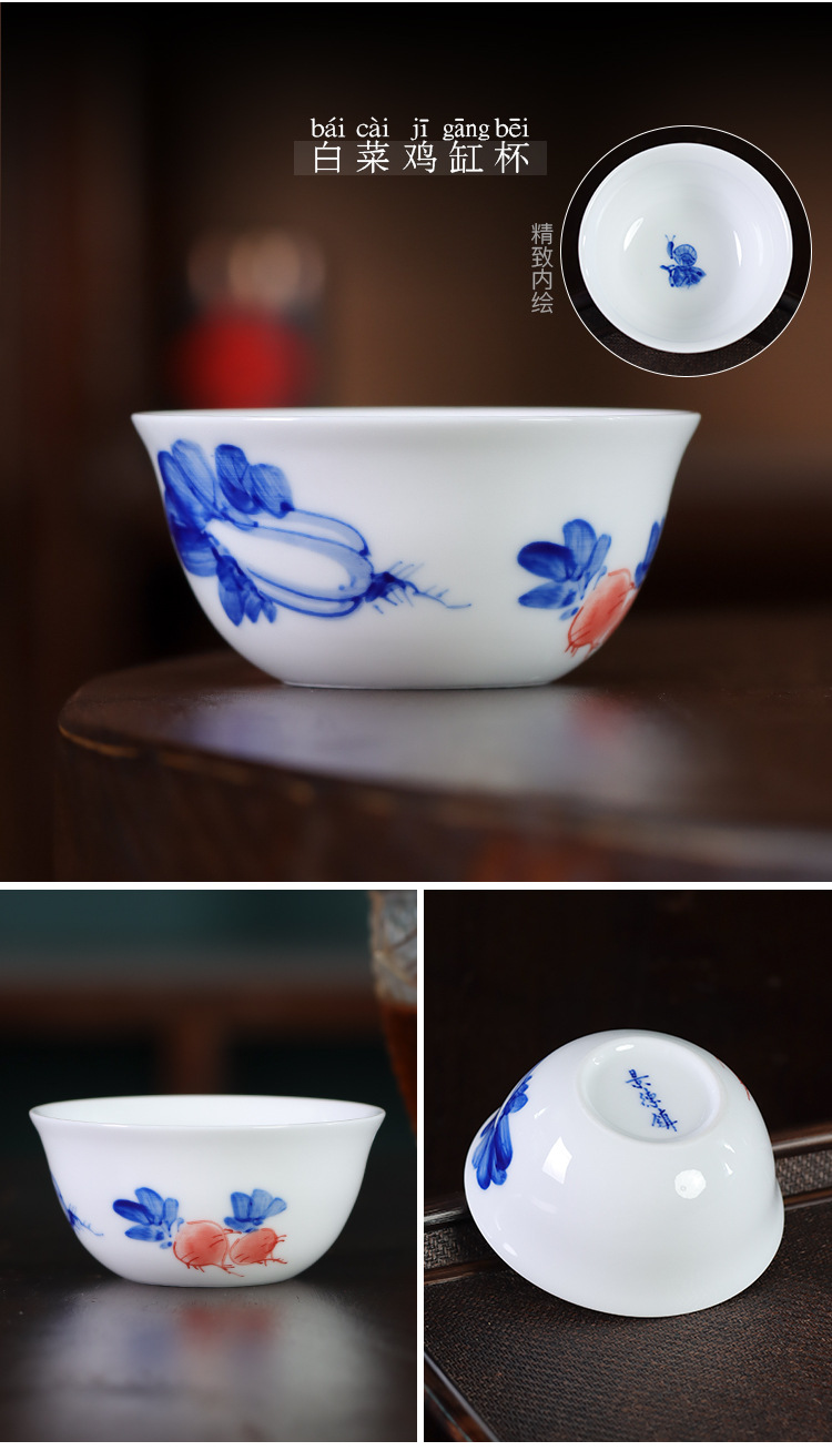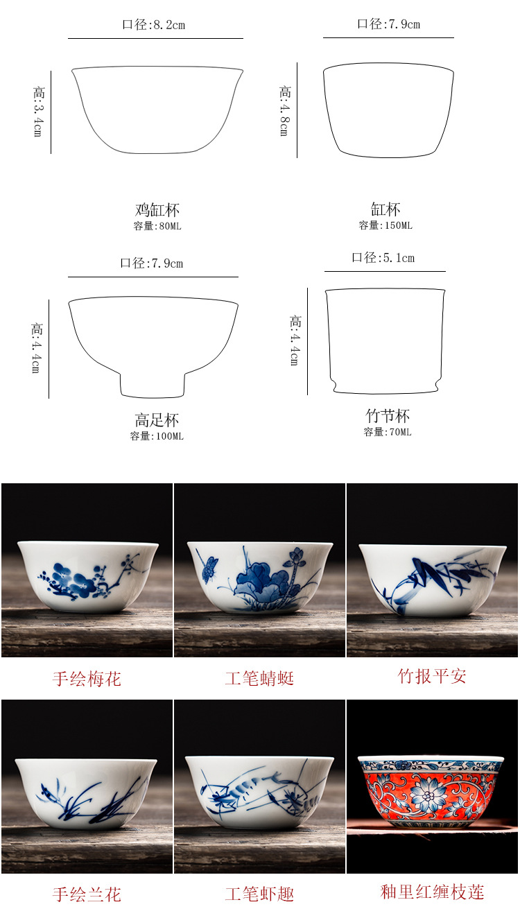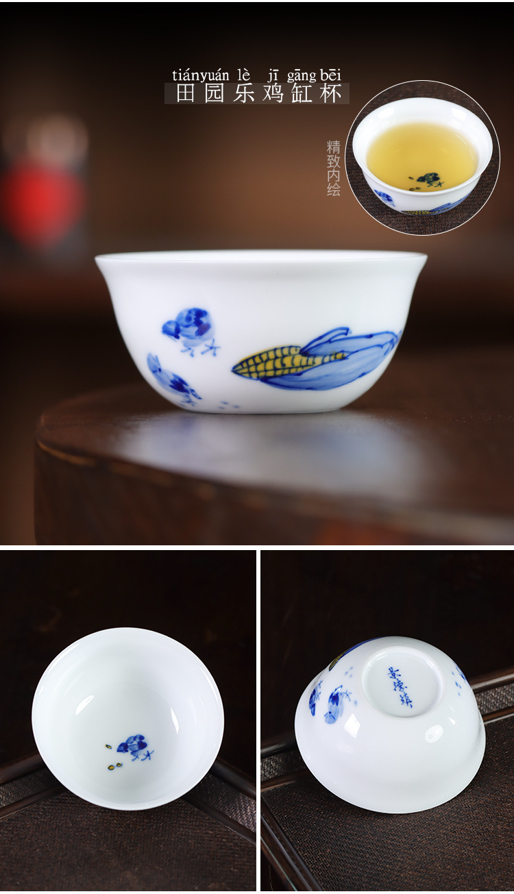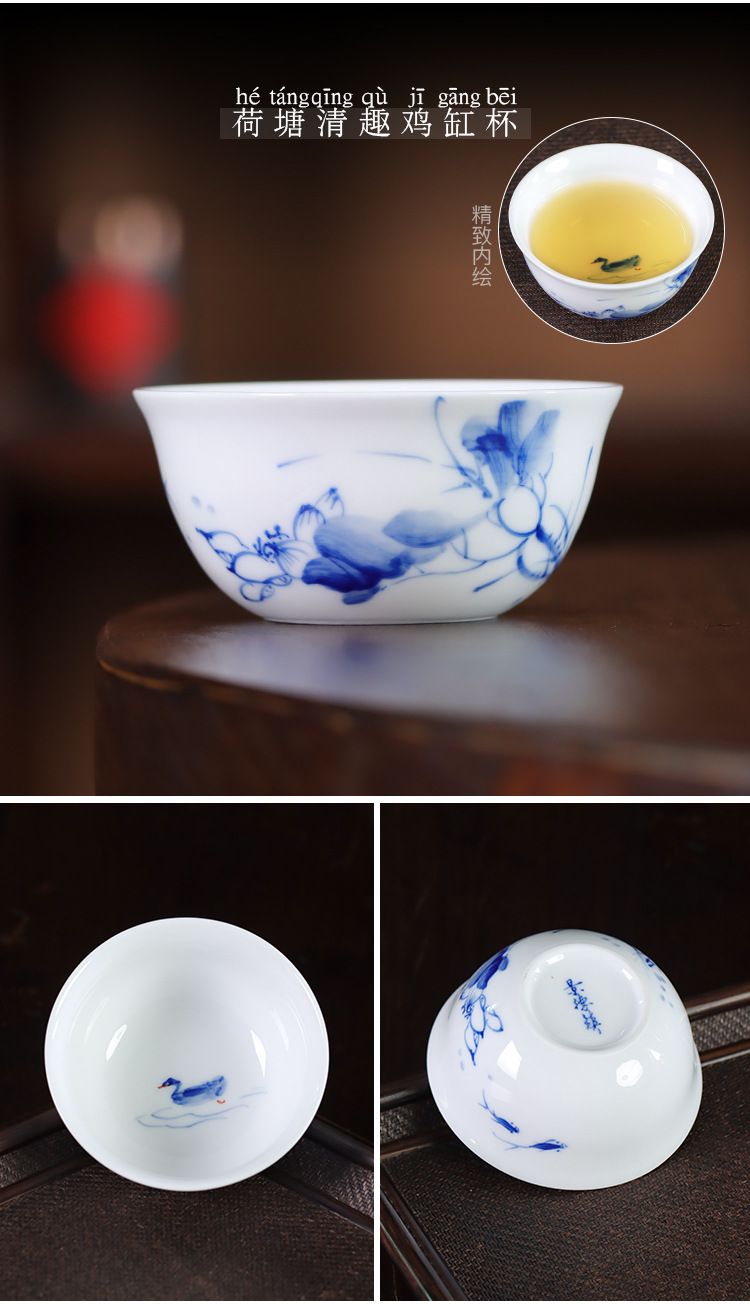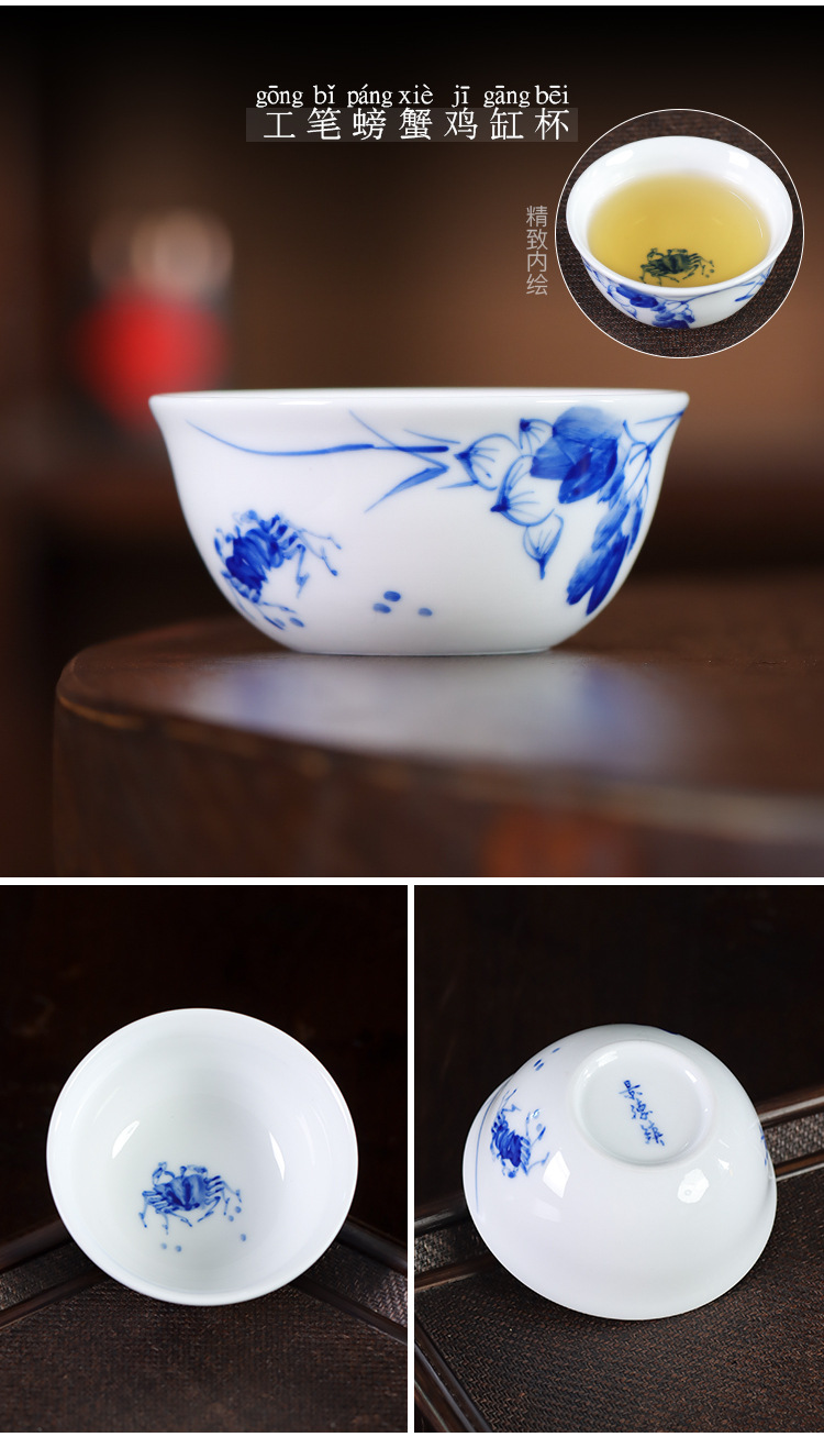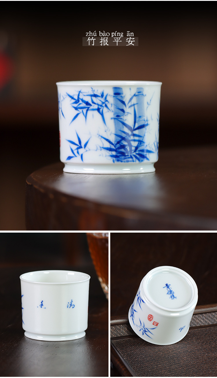 순수한 손으로 그린 파란색과 흰색 도자기 마스터 컵 싱글 컵 Jingdezhen 세라믹 쿵푸 작은 차 컵 차 컵 차 컵 치킨 그릇 차 그릇