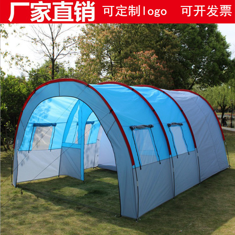 此款隧道帐篷结构:双层帐 撑杆材质:玻璃纤维