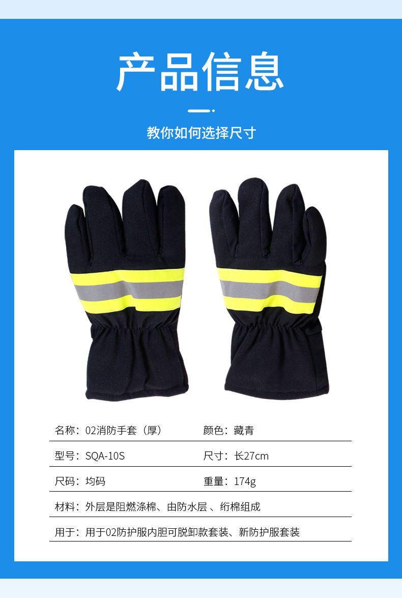 국경 간 단열 및 난연 02형 소방 장갑, 두꺼운 폴리에스터 면 혼방 다섯 손가락 장갑, 화재 진압 및 구조용 손 보호 장갑 도매