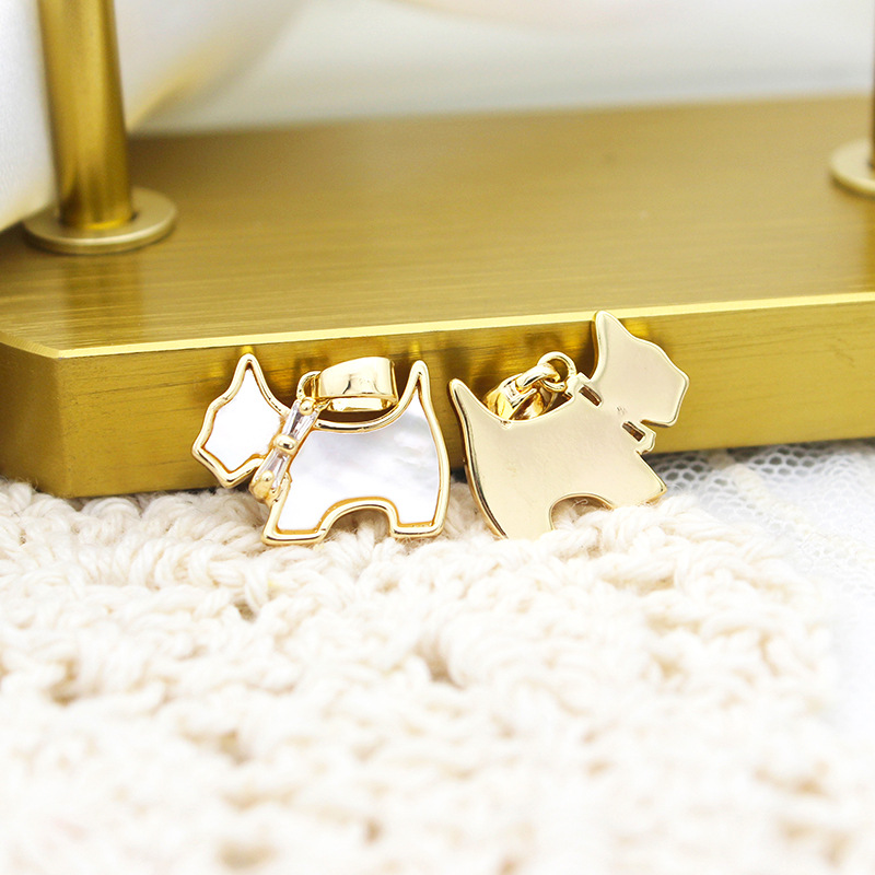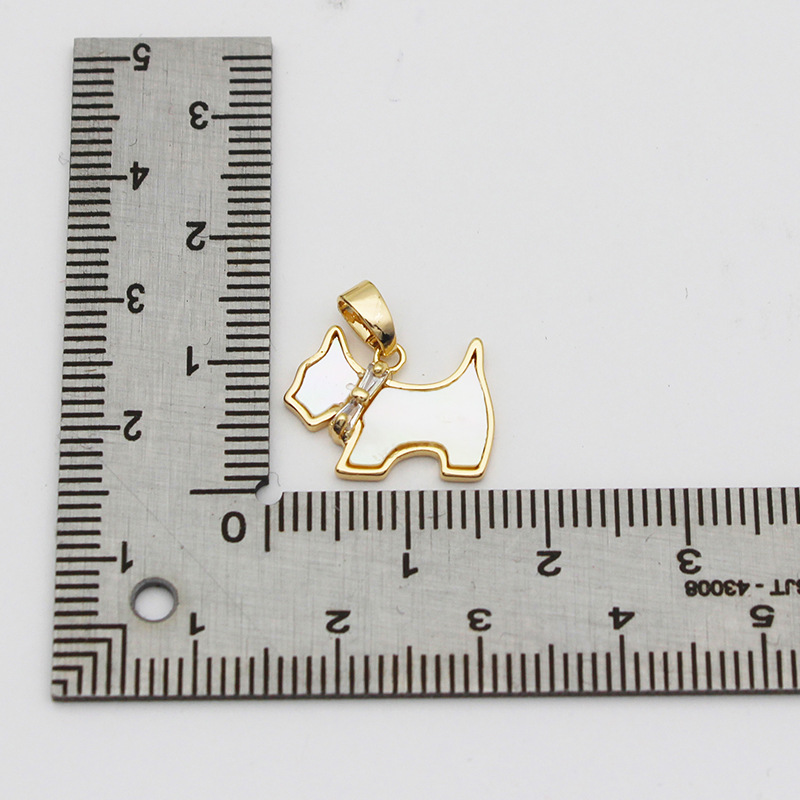 DIY 한국식 보석 액세서리 구리 도금 18K 트루 골드 지르콘 화이트 쉘 강아지 싱글 매달려 펜던트 목걸이