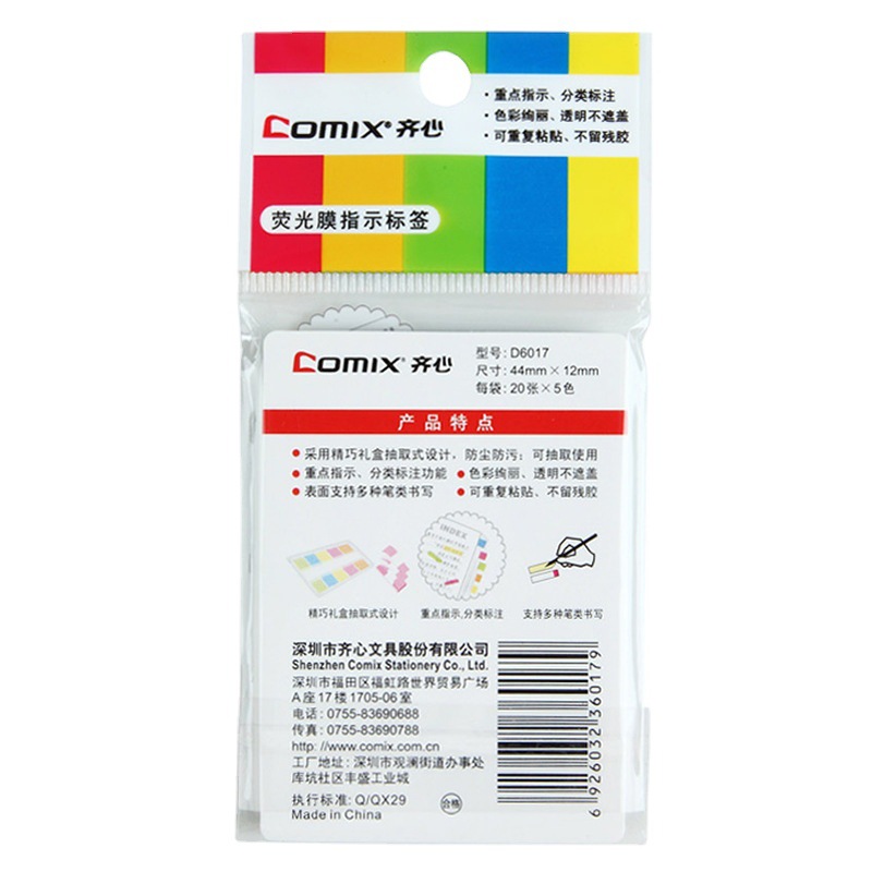 코믹스 형광 필름 색인 라벨 표시기 스티커 44x12mm 스티커 20 장 * 5 색 사무실 문구 D6017