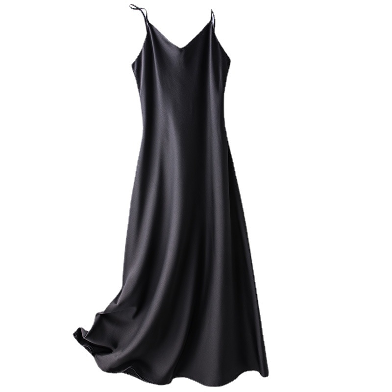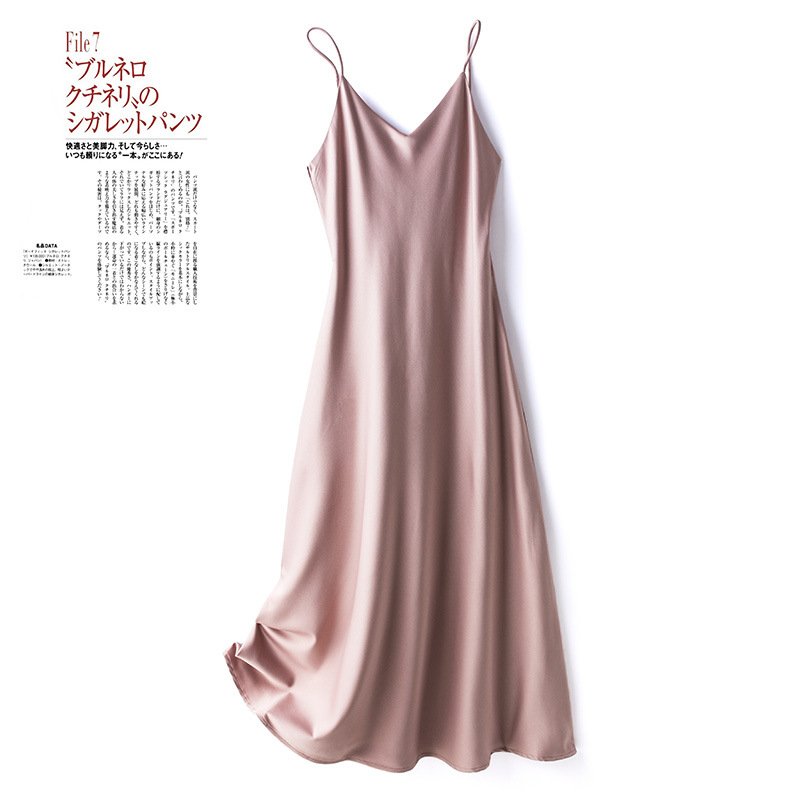 실크 원피스 Triacetate 새틴 슬립 스커트 여자의 지하실 세련된 2021 봄과 여름 해변 원피스 휴일 긴 원피스