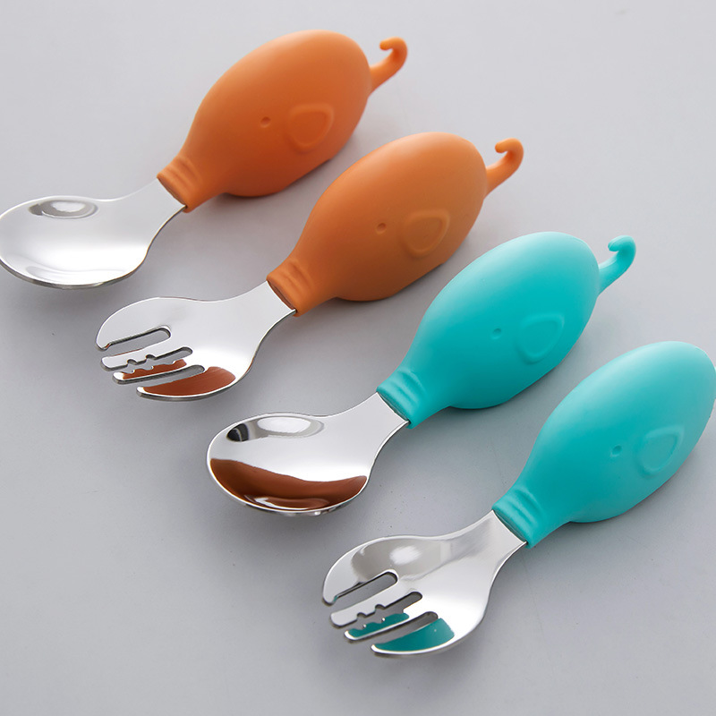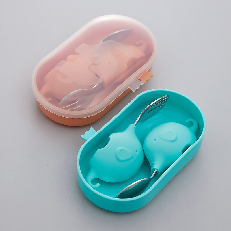 아기 아기 어린이 짧은 손잡이 포크 스푼 세트 만화 식기 훈련 음식 숟가락 304 스테인레스 스틸 보관 상자