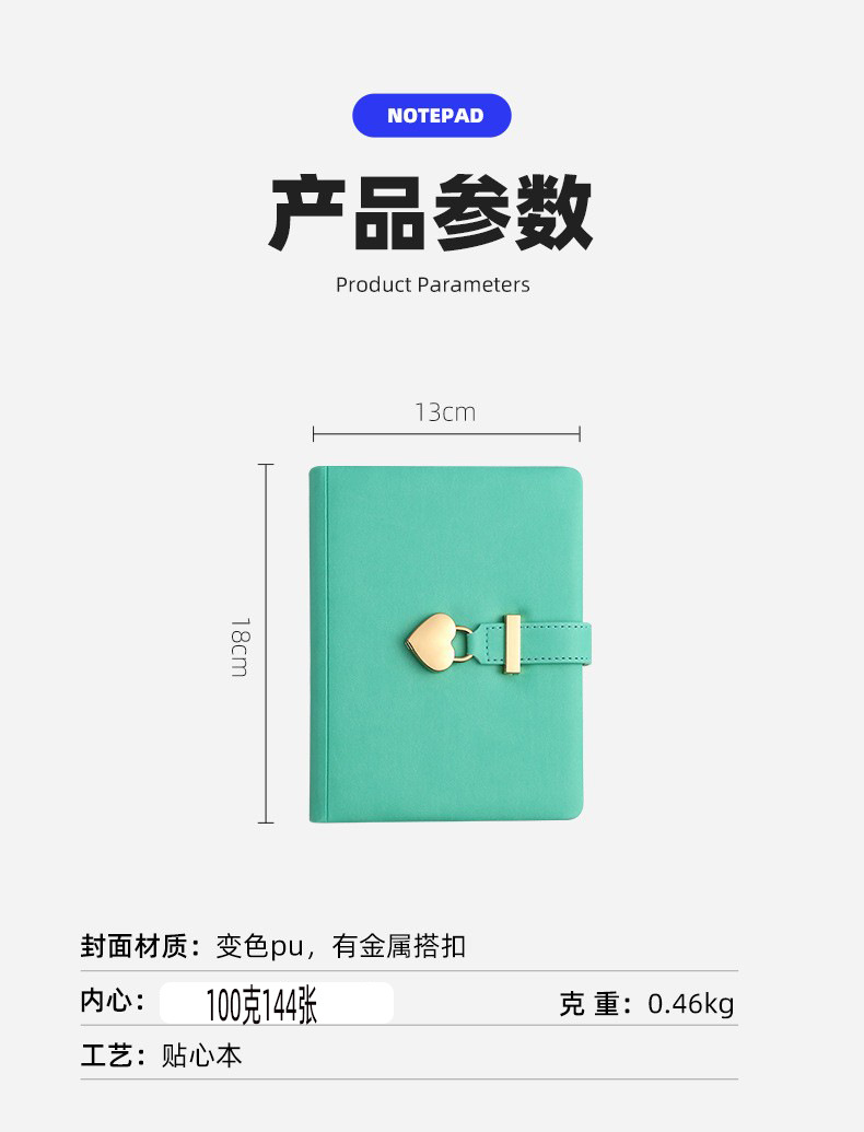 PU 노트북 맞춤 제작, 로고 인쇄 가능, 고급스러운 하트 잠금 노트, 사무용 문구, 회계용 노트 X