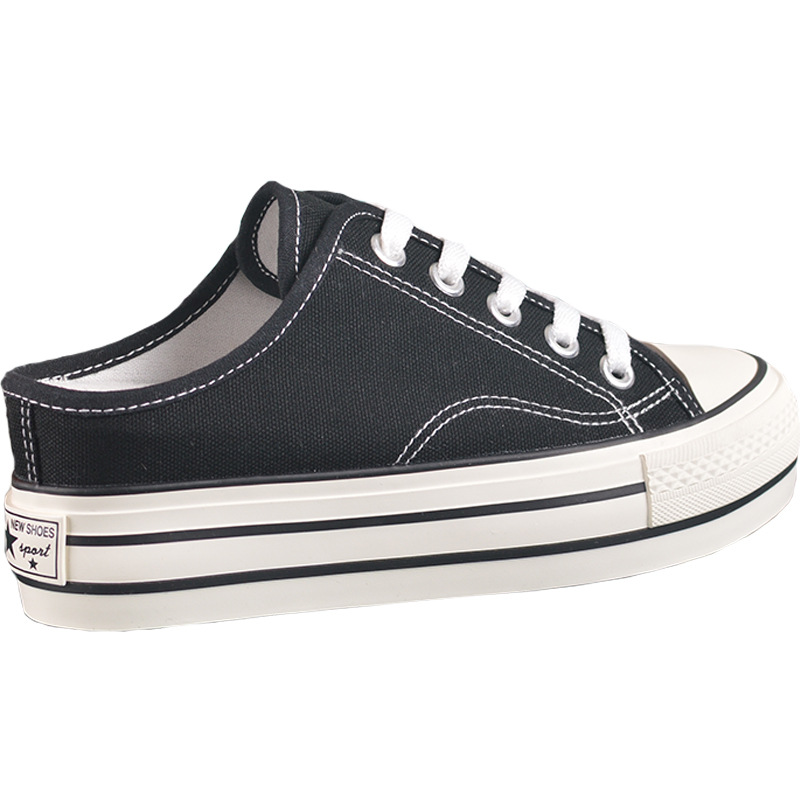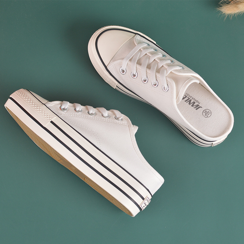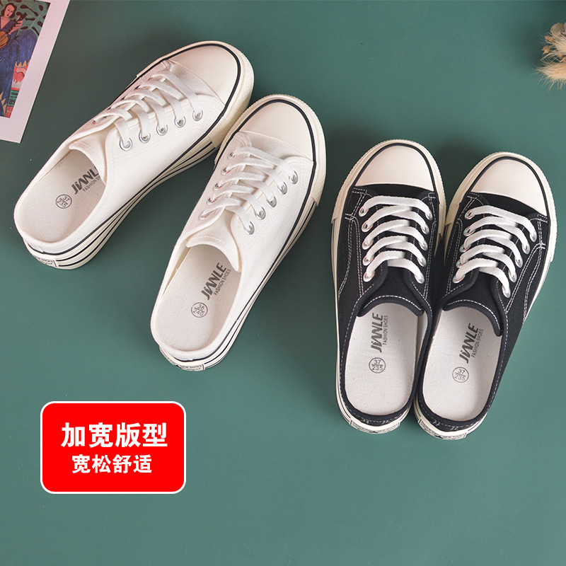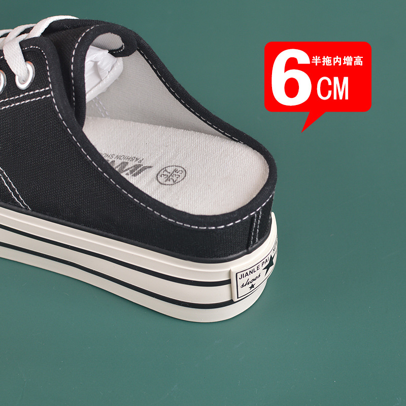 내부 높이 캔버스 신발 여성 반 드래그 바닥 여름 새로운 조이스틱 착용 가방 헤드 힐 슬리퍼