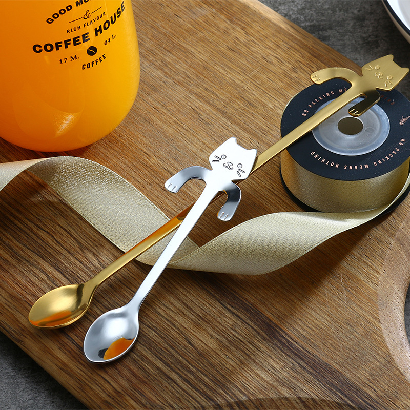 걸이용 도매 커피 스푼 304 스테인레스 스틸 고양이 스푼 만화 손잡이 교반 스푼 차 스낵 스푼 차 스푼