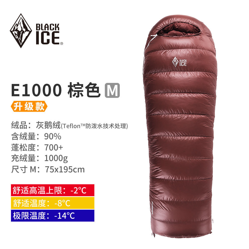 블랙 아이스 침낭 E400E700E1000 초경량 봉투 구스다운 성인 휴대용 더티 여행 캠핑