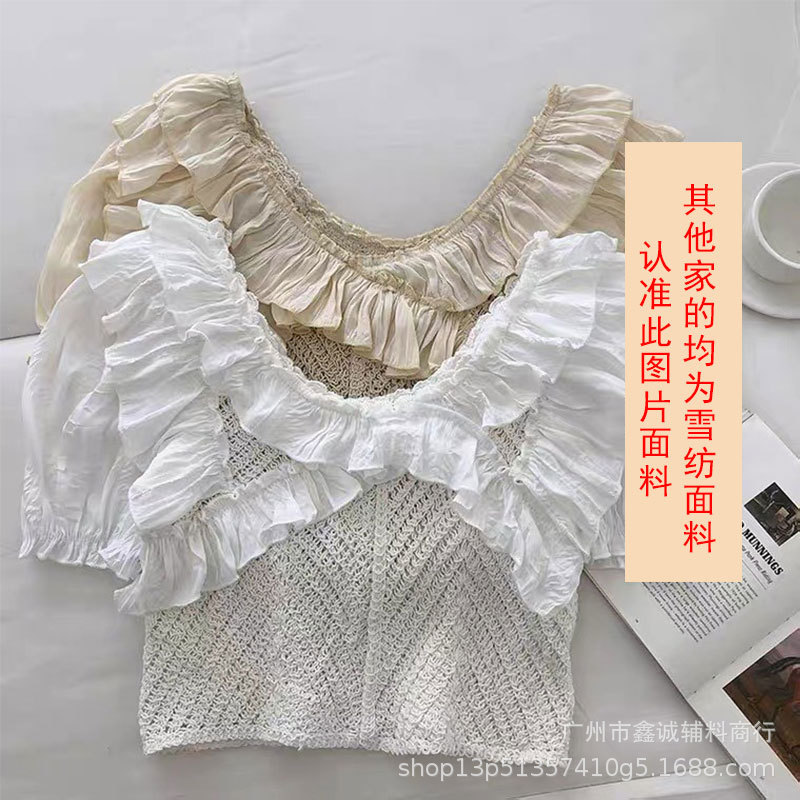 봄 새로운 한국 스타일 퍼프 슬리브 탑 쉬폰 셔츠 프릴 셔츠 여성의 디자인 감각 프랑스 틈새 셔츠 여름