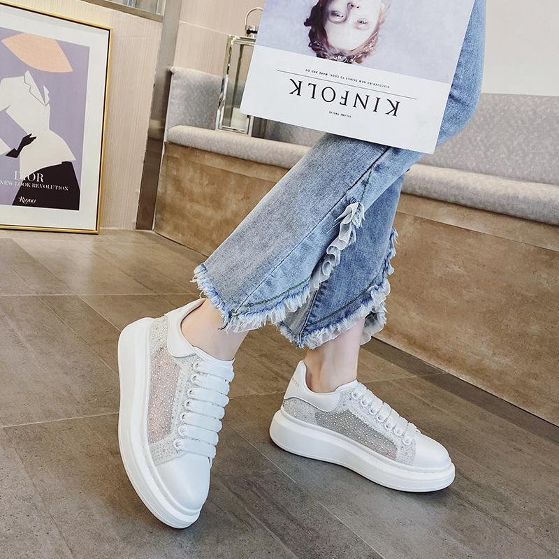 여성용 신발 2025 트렌디 신발 신상 맥퀸 화이트 슈즈 여성 여름 메쉬 통기성 패션 워터드라인 캐주얼 브랜드