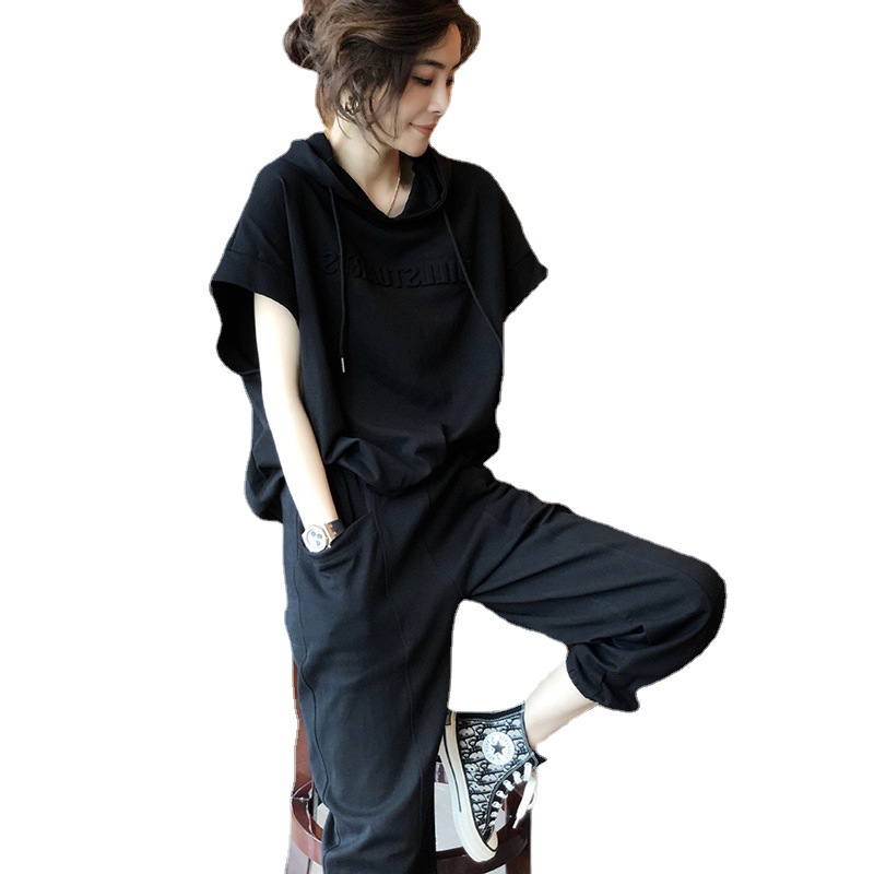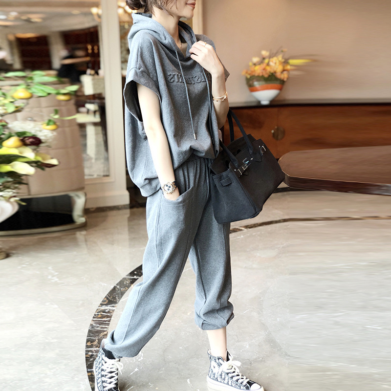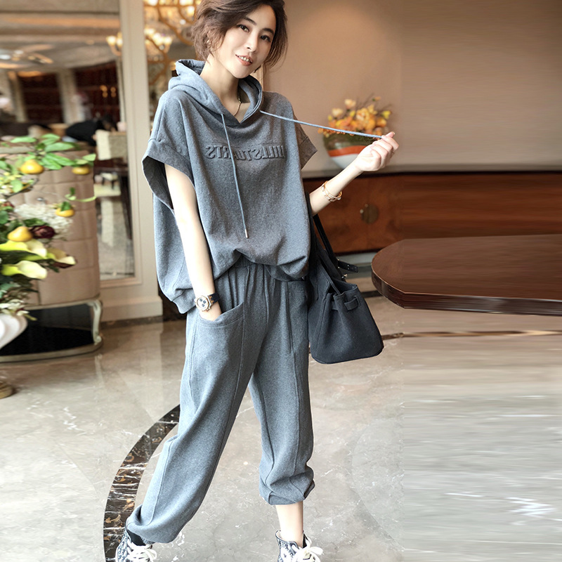 도매 2025 여름 신상 패션 슬리밍 스포츠 캐주얼 패션 세트 여성 유럽풍 세련된 투피스 트렌디 세트