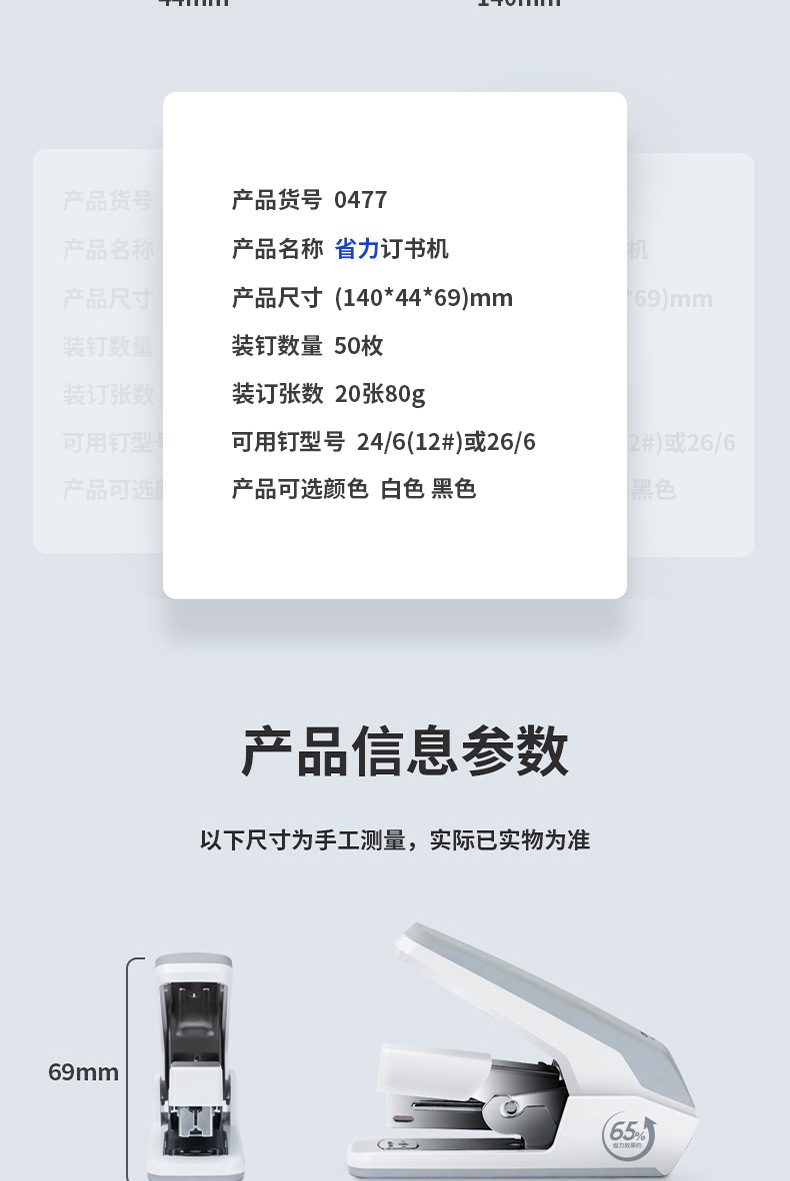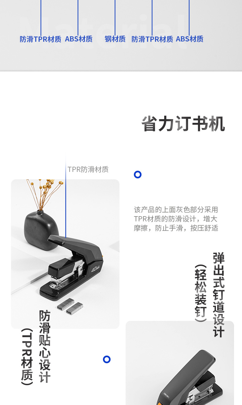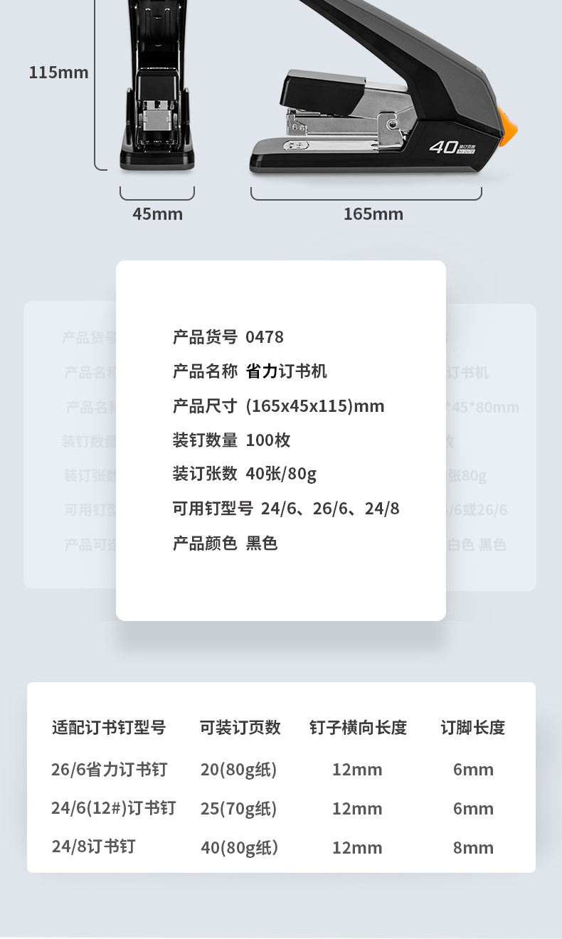 델리 0477/0478 노동 절약 스테이플러 학생 제본 기계 스테이플러 학습 사무용품