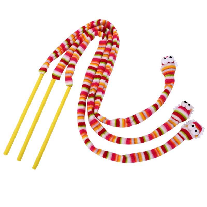 애완 동물 고양이 장난감 무지개 색 만화 뱀 고양이 스틱 고양이 스틱 크로스 국경 공장 재고 도매 애완 동물 용품
