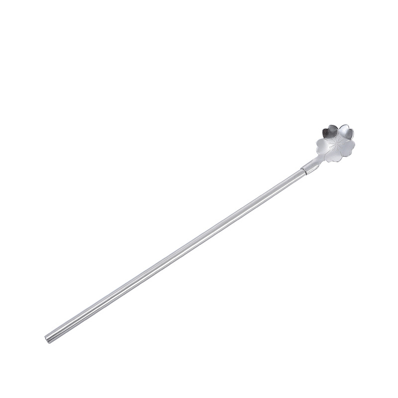 공장 직공급 304 스테인레스 스트로 벚꽃 라운드 헤드 식기 다용도 스푼 밀크 쉐이크 샌드 아이스 믹싱 짚 스푼