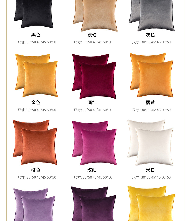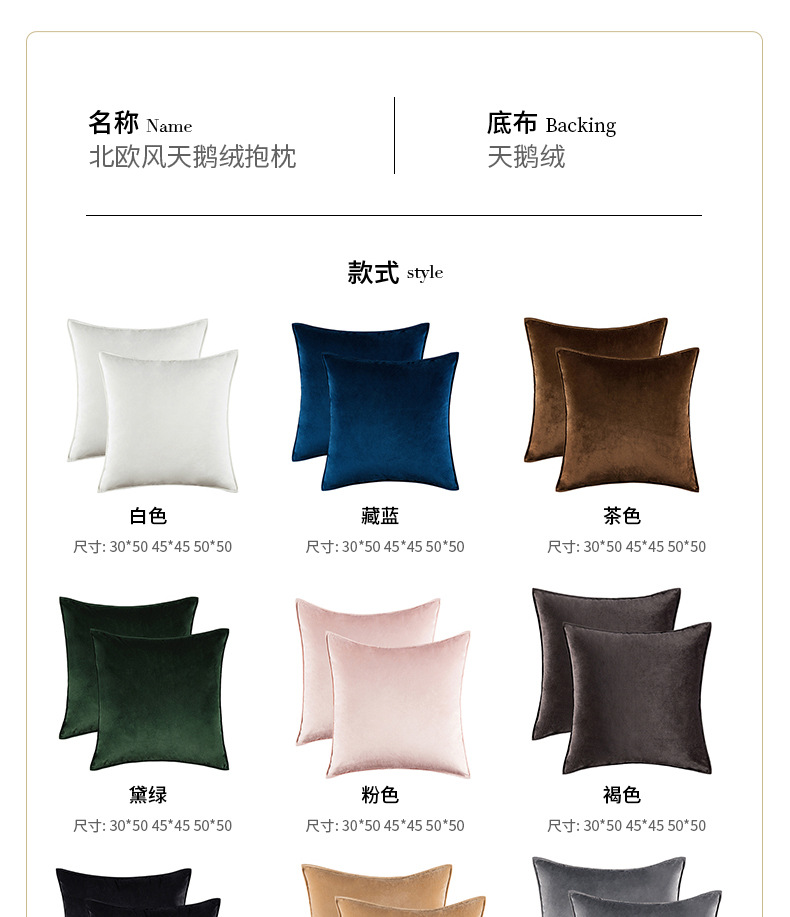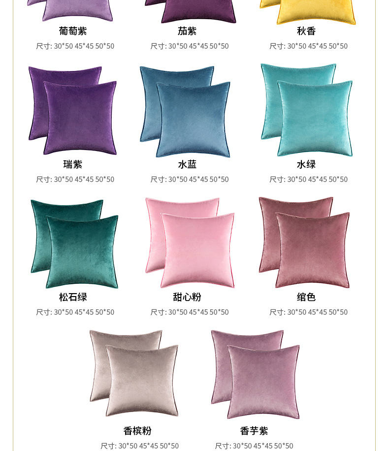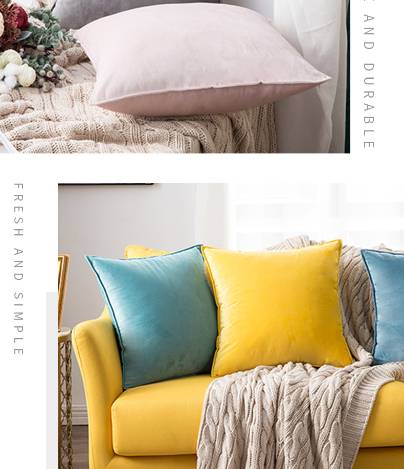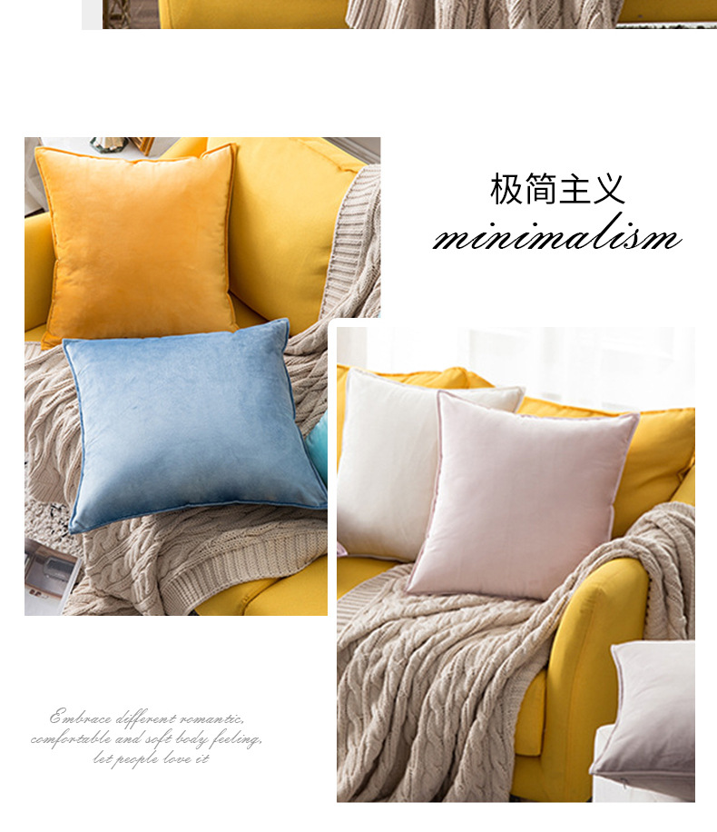 북유럽 스타일 심플 단색 벨벳 쿠션 소파 전체 커버 베개 침대 머리받침 쿠션 침실 베개 커버 도매