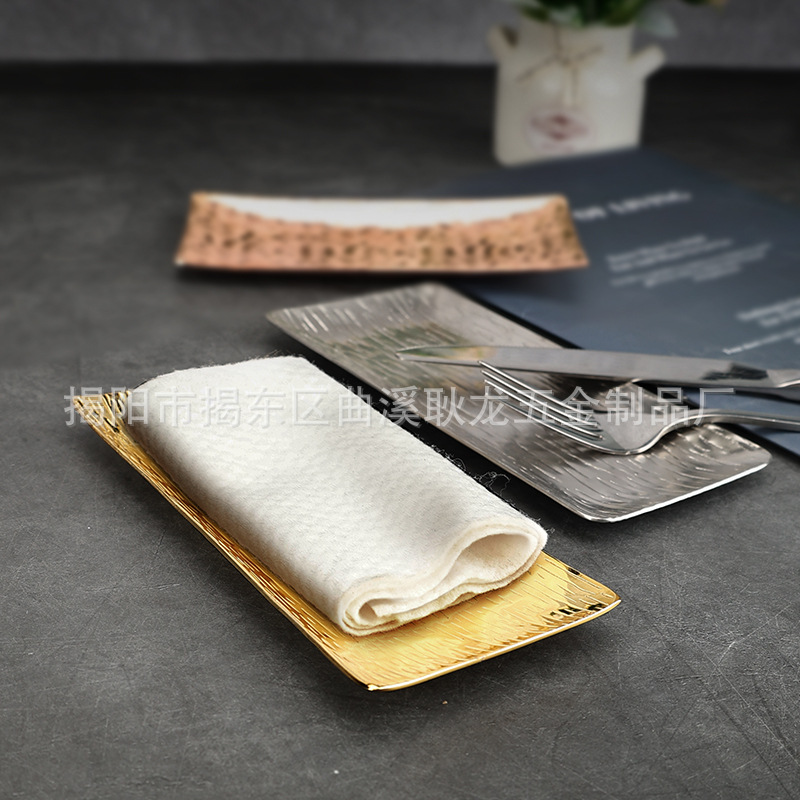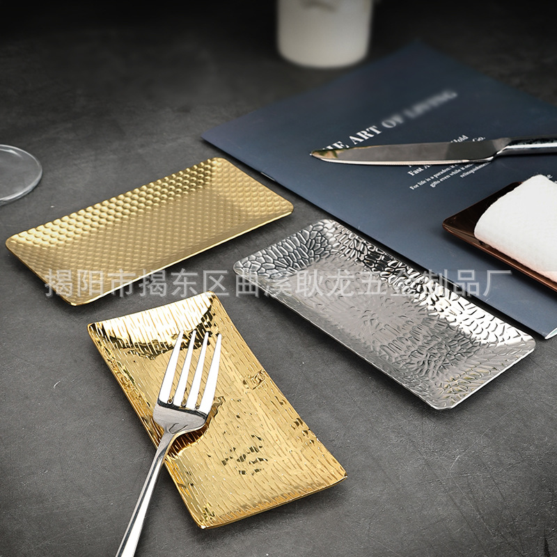304 스테인리스 수건 트레이 물티슈 접시 작은 트레이 직사각형 망치 무늬 수납 트레이 간식 접시 식기