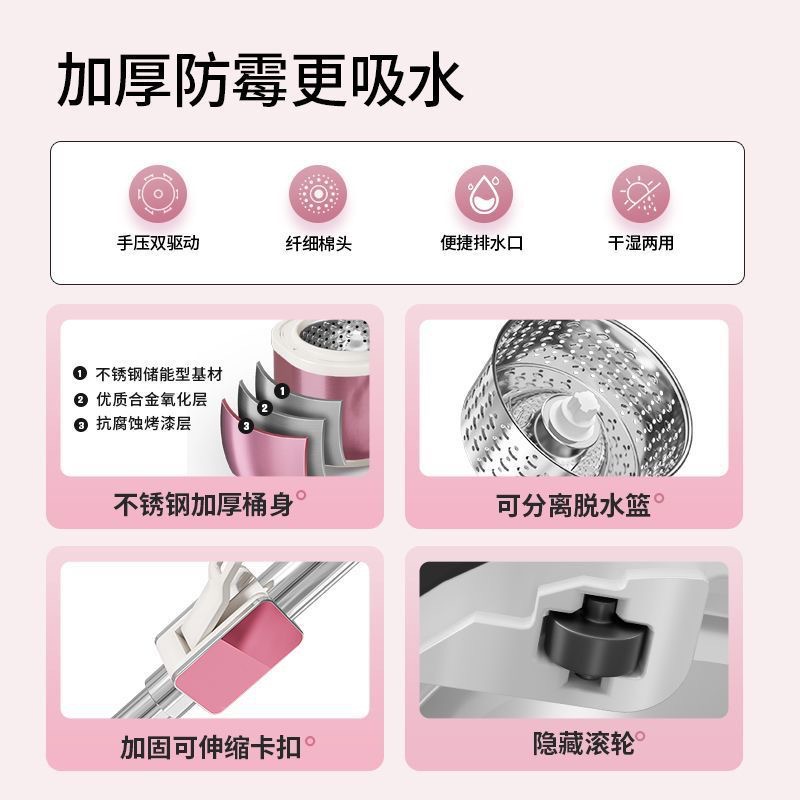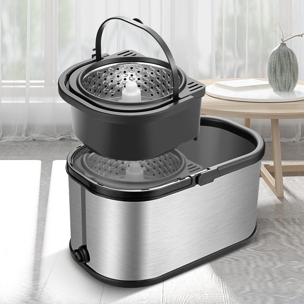此款旋转拖把桶免洗拖把是本公司新设计全不锈钢身拖把桶的产品,一上市受到众多买家的青睐和喜欢!!!本公司20多年的模具技术经验,品质优先,一站式服务,采购者的睿智选择,期待您的来电来临咨询!!!