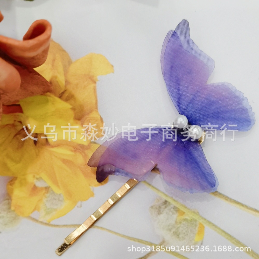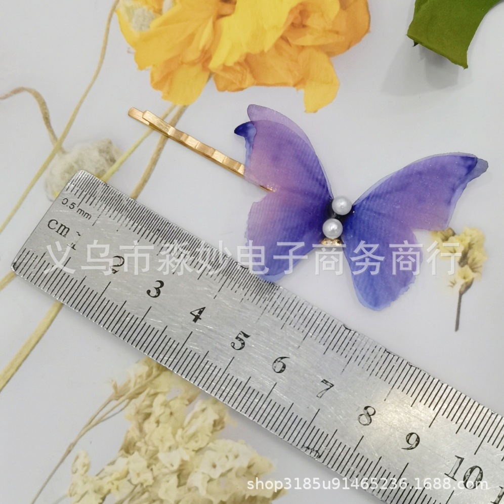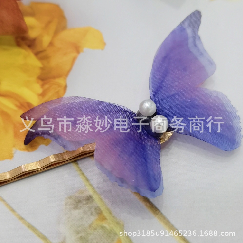 紫色双层薄纱蝴蝶珍珠,手工制品,量大有优惠!