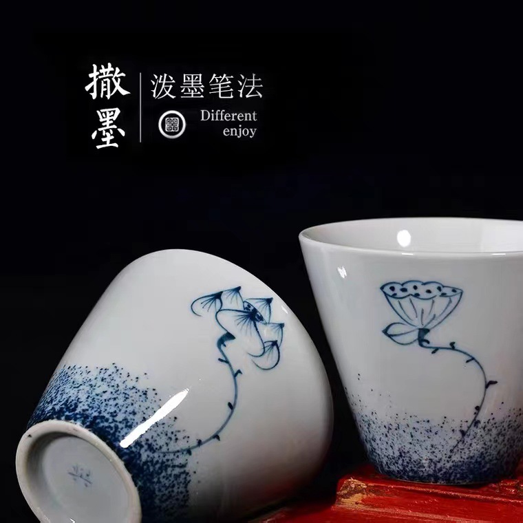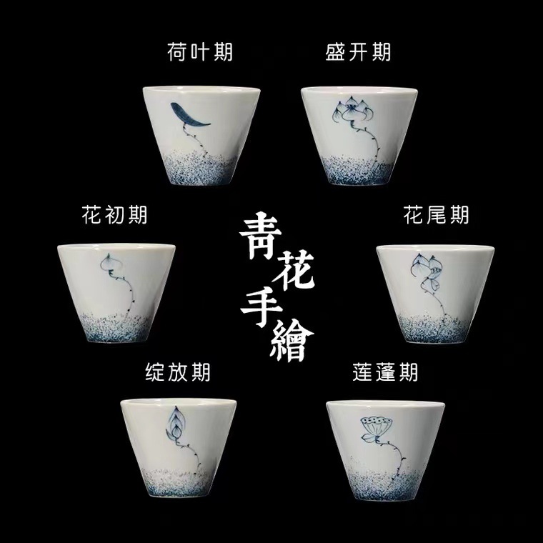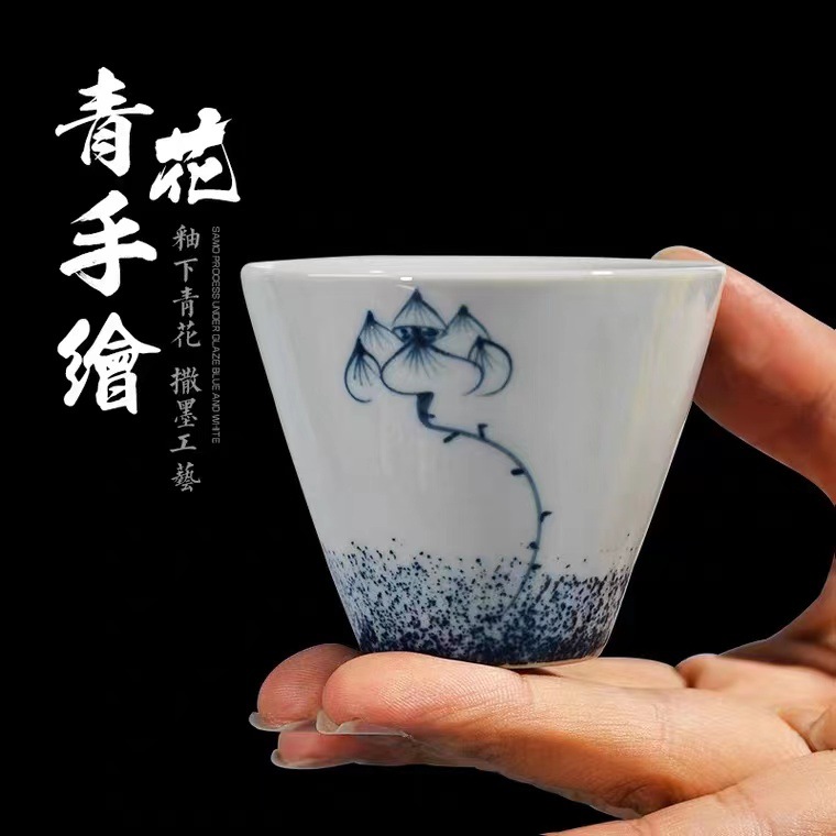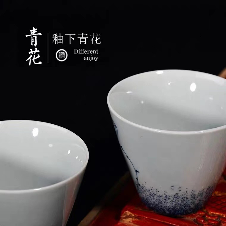 보얀 스퀘어 손으로 그린 파란색과 흰색 골동품 공푸 차 향기 시음 컵 쿵푸 작은 찻그릇 찻잔 일본 차 세트