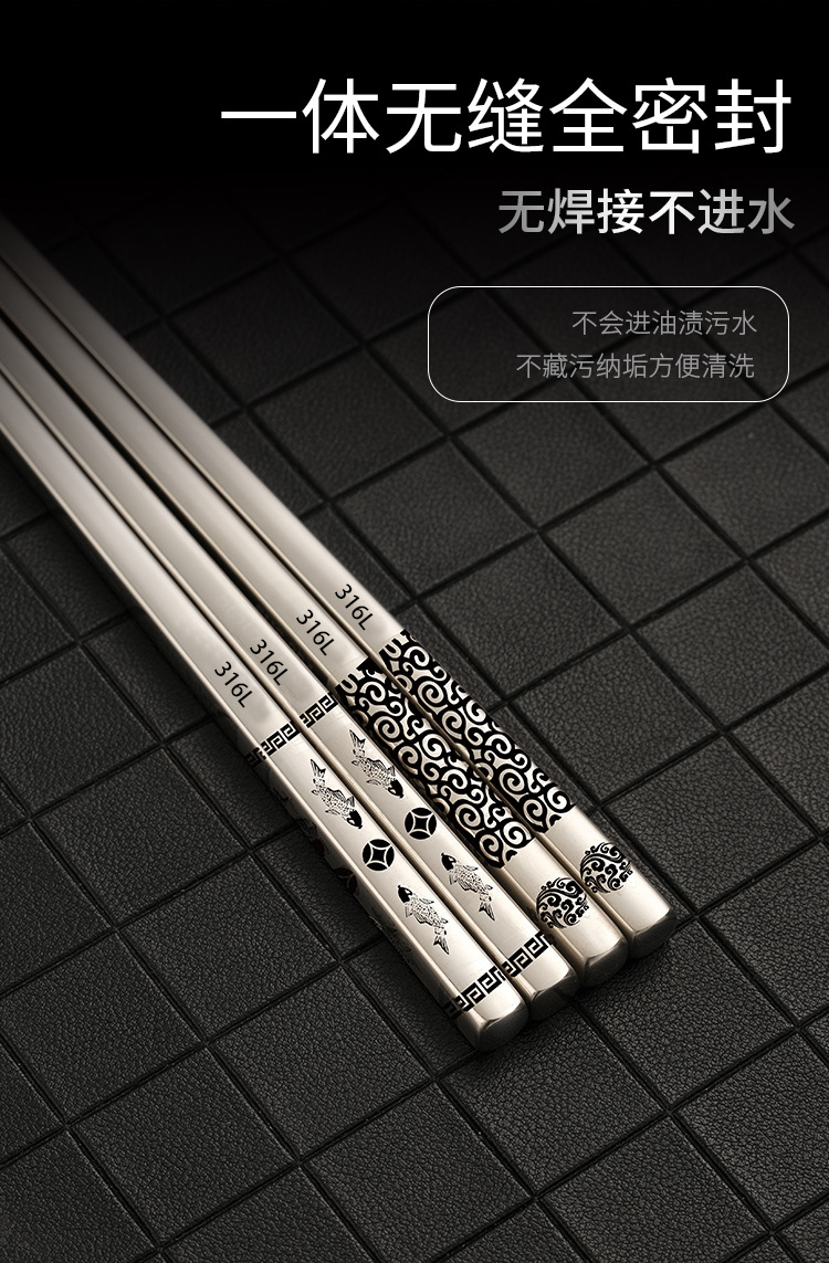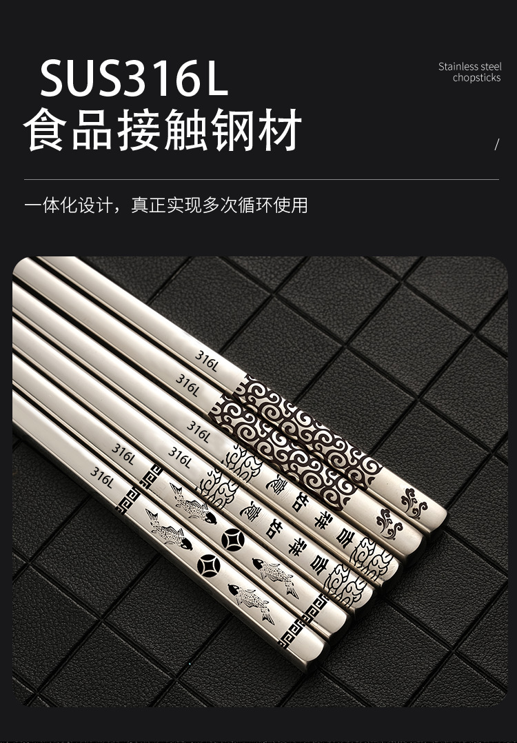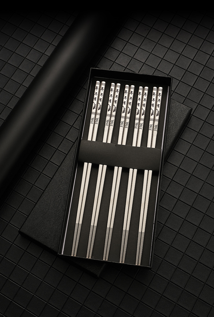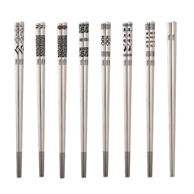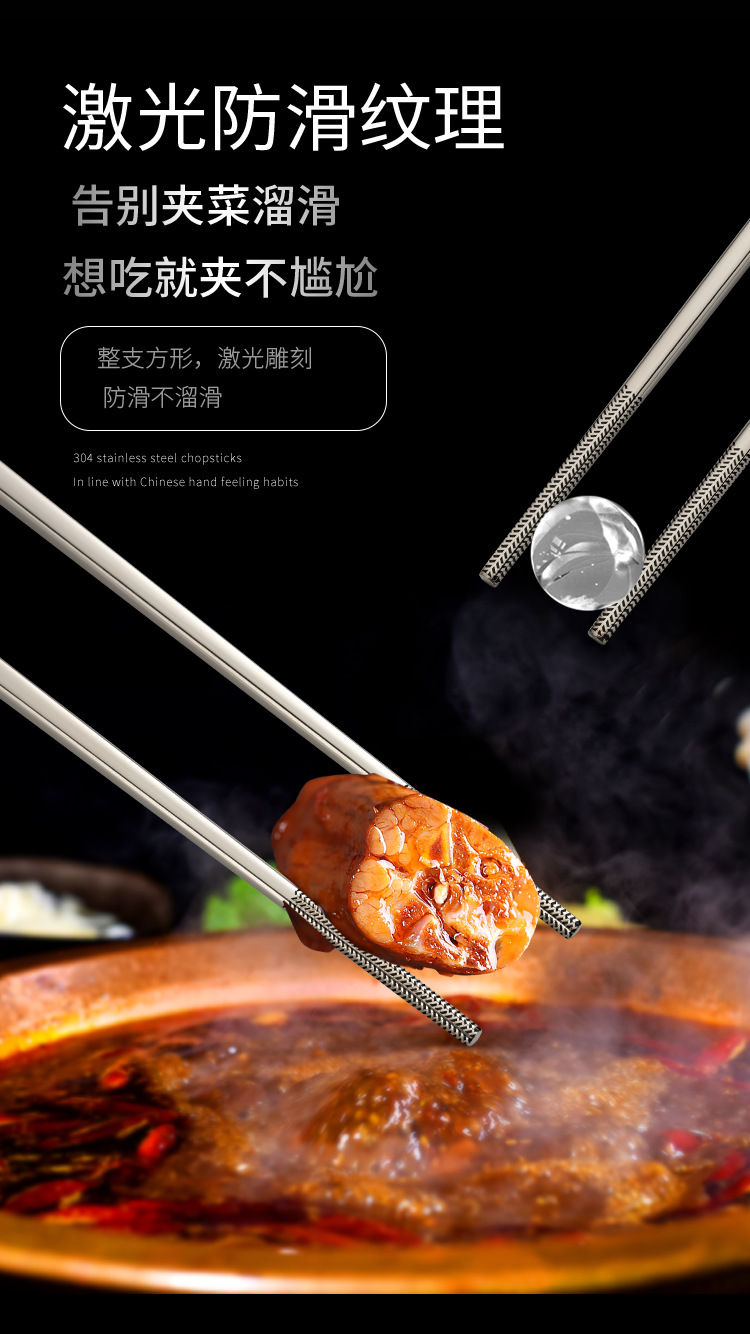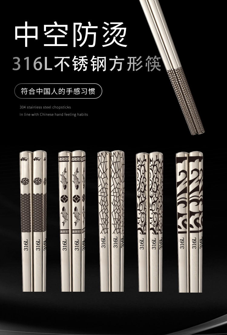 316L 스테인레스 스틸 젓가락 가정용 호텔 식기 세트 미끄럼 방지 가정용 중공 사각 젓가락 레이저 로고